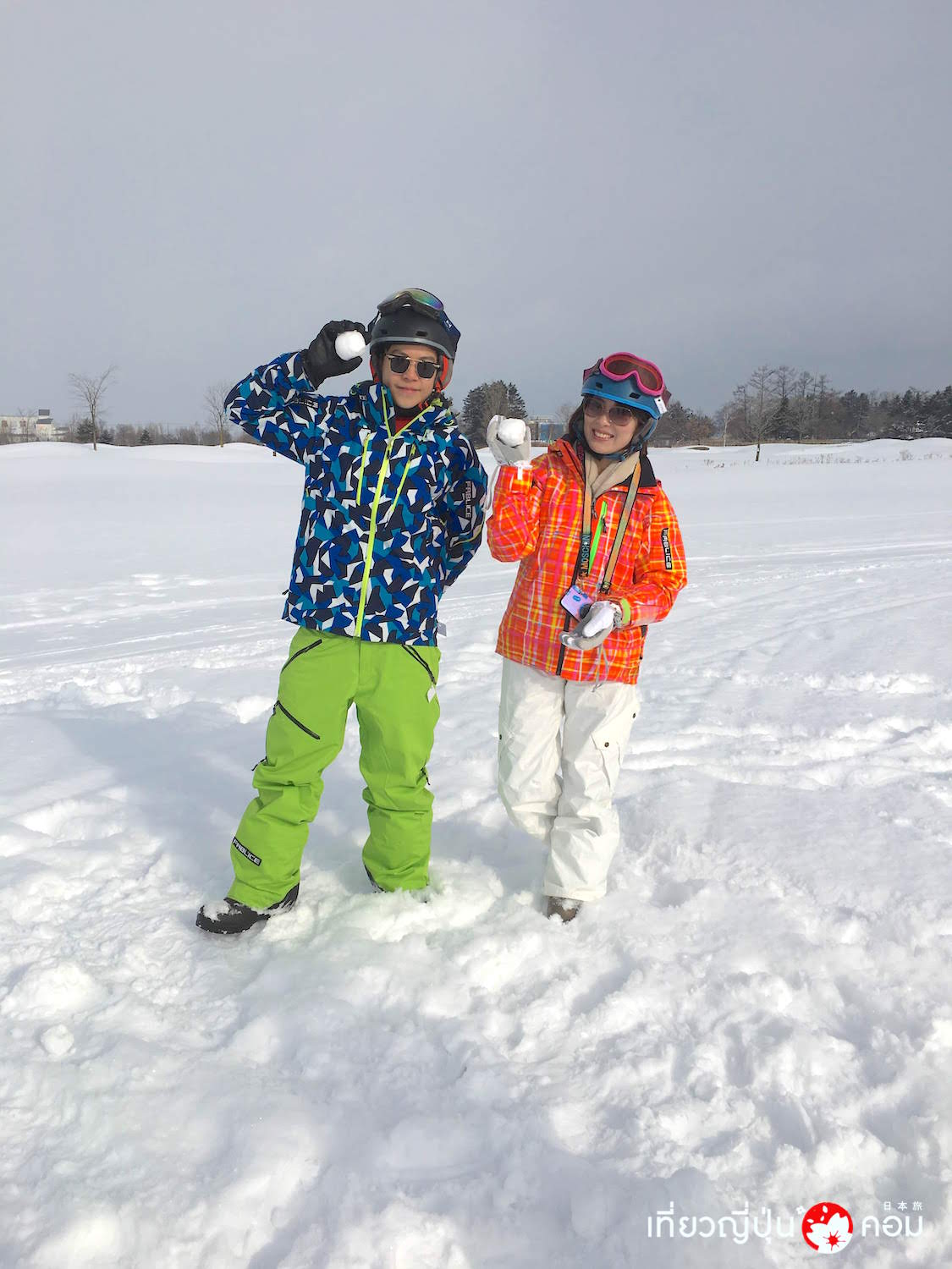 ระหว่างเล่นกิจกรรม Snow Rafting Touring ก็มีจอดแวะให้เราลงไปเล่นปั้นตุ๊กตาหิมะ แล้วก็ปาบอลหิมะใส่กันด้วย