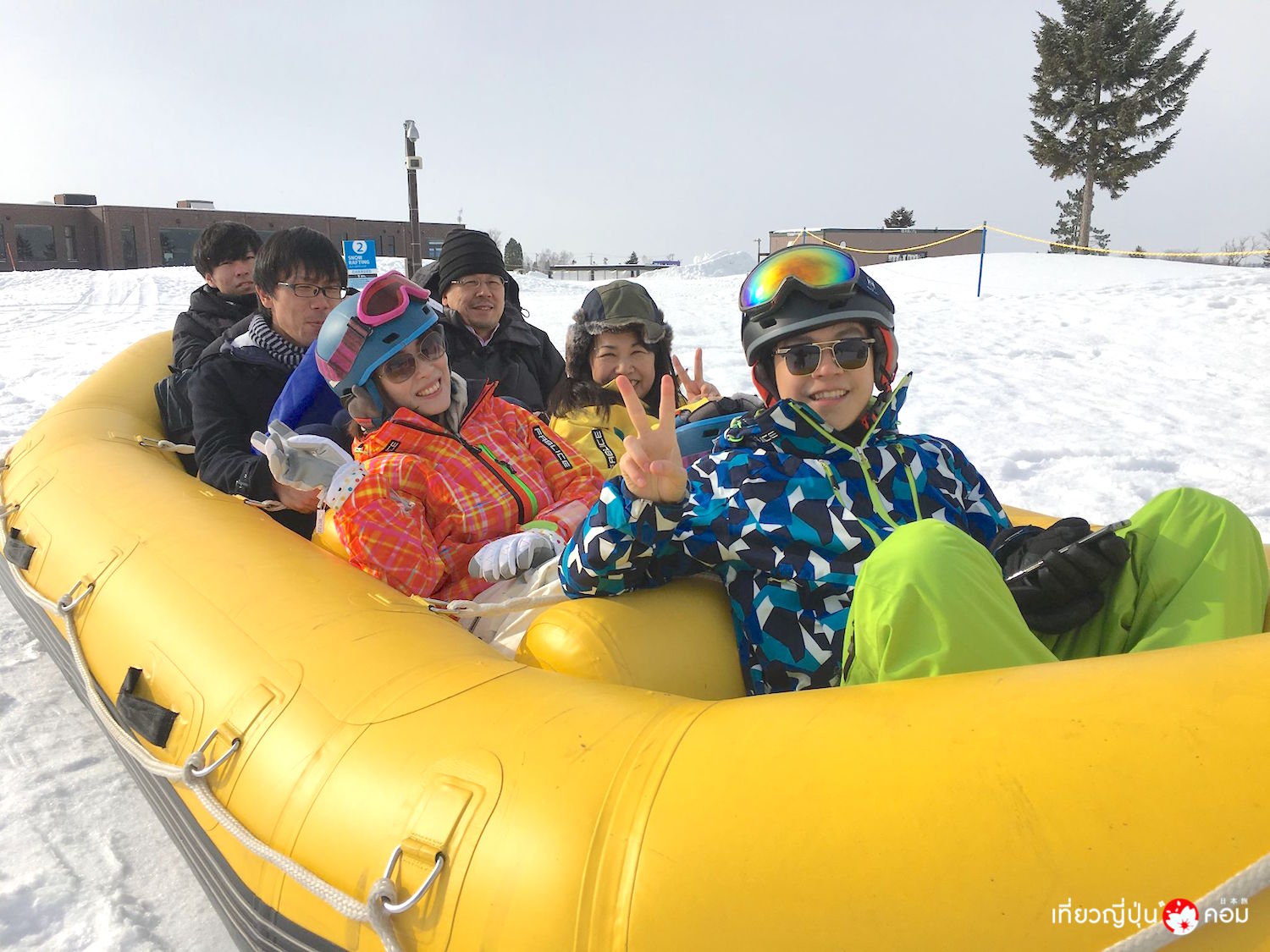 Snow Rafting เล่นได้หลายคนพร้อมกัน มากันเป็นแก๊งยิ่งสนุก นั่งไปโดนเหวี่ยงไป หิมะสาดหน้าไป ขอบอกเลยว่าฟินม้ากกก