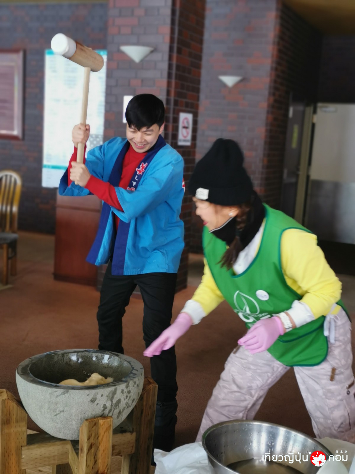 ปิดท้ายด้วยกิจกรรม Mochi-tsuki ทำโมจิด้วยตัวเอง ใครอยากรู้ว่ากว่าเราจะได้โมจิเนื้อนุ่มหนึบแสนอร่อยนั้น แลกมาด้วยพละกำลังมากแค่ไหน ต้องลองทำดูครับ ทำเสร็จใหม่ ทานตอนร้อนๆ อร่อยมากๆ