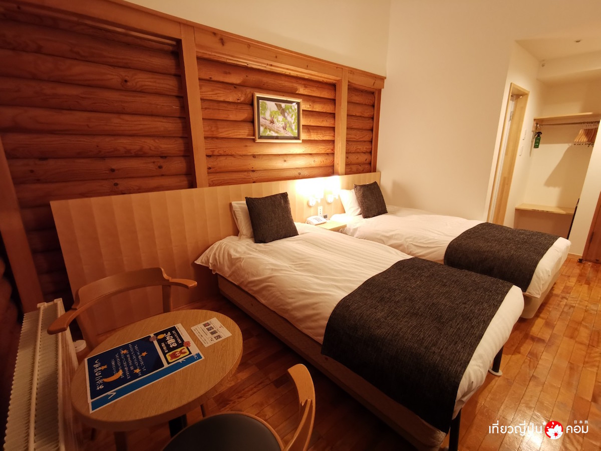 โรงแรม Log Hotel The Maplelodge Iwamizawa ห้องพักสไตล์ Log ที่รายล้อมไปด้วยบรรยากาศหิมะขาวโพลน ท่ามกลางป่าแสนสงบ โรงแรมแห่งนี้มีชั้นเดียวและมีห้องพักเพียง 15 ห้องเท่านั้น มีบริการบ่อน้ำพุร้อนออนเซ็น และ ซาวน่า ที่ทำให้หลายคนประทับใจ ที่อยากให้ทุกคนมาลองพักสักครั้ง แต่ถ้าไม่มีเวลามาพักค้างคืน จะมาใช้บริการออนเซ็น ซาวน่า แวะทานข้าว ก็ได้เช่นกัน
