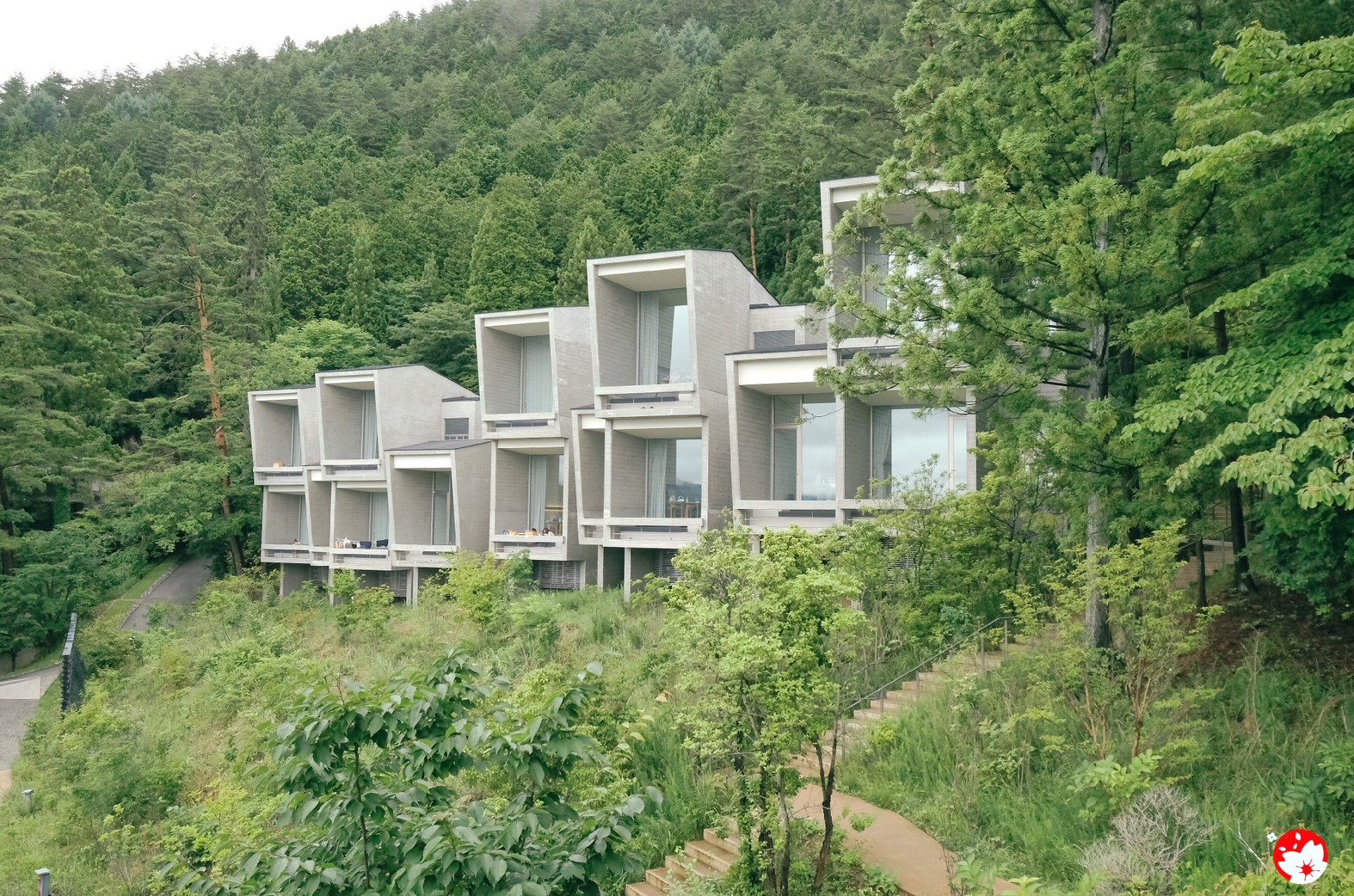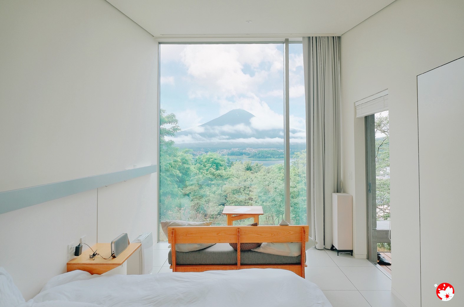 ความพิเศษของที่นี่ อยู่ตรงที่ห้องพักที่ได้รับการออกแบบมาสำหรับการชมวิวภูเขาไฟฟูจิโดยเฉพาะ เพราะไม่ได้เพียงแค่ติดกระจกบานใหญ่ไว้ในห้องนอนเท่านั้น แต่ออกแบบให้ทุกห้องพัก มีระเบียงส่วนตัว และ ยังหันหน้าไปหาภูเขาไฟฟูจิในองศาที่พอดีที่สุดอีกด้วย