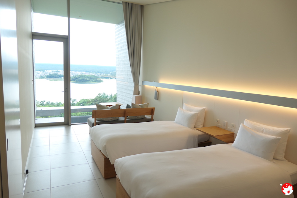 ห้องพักของที่นี่ จะเป็นสไตล์เคบิน (Cabin) ถูกออกแบบให้เหมาะสำหรับการชมฟูจิมากที่สุด ด้วยหน้าต่างบานใหญ่ พร้อมระเบียงส่วนตัว และ การปรับองศาของทุกห้องพักที่แตกต่างกัน เพื่อให้ไม่ว่าจะตั้งอยู่ตรงไหน ก็สามารถเห็นฟูจิซังได้