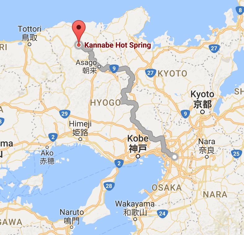 เริ่มต้นการเดินทางวันแรกจาก Hankyu Highyway Bus Osaka-Umeda Terminal โดยสาร รถบัสเซ็นตัน (Zentan Bus) ปลายทาง ลงที่ Kinosaki onsen แต่เราจะลงก่อนที่ป้ายรถบัสใก้ล้กับสถานี Ebara เพื่อเดินทางไปเที่ยวคันนะเบะกัน ใช้เวลาเดินทางประมาณ 3 ชั่วโมง (ค่าโดยสารประหยัดกว่ารถไฟประมาณเกือบครึ่ง)