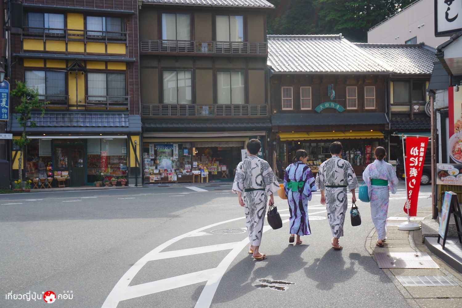 เสน่ห์ของคิโนซะกิอนเซ็น คือ การเปลี่ยนชุดยูกะตะ สวมเกี้ยะไม้ของจริง ที่ต้องทรงตัวให้ดีไม่งั้นมีหงายหลัง เวลาเดินก็จะได้ยินเสียงเตาะแตะ ให้อารมณ์แบบญี่ปุ่นสมัยก่อนมากๆ แล้วเดินไปแช่ออนเซ็นทั่วเมือง มีให้เลือกถึง 7 แห่ง ยังไม่นับบ่อแช่เท้าที่มีกระจายตัวทั่วเมืองอีกด้วย