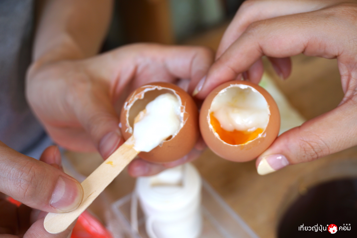 เมื่อลวกไข่ได้ที่แล้ว ก็ใช้ Egg cutter ทำการตัดไข่ทานกันตรงนั้นเลย ขอบอกว่ารสชาติดีมากๆครับ