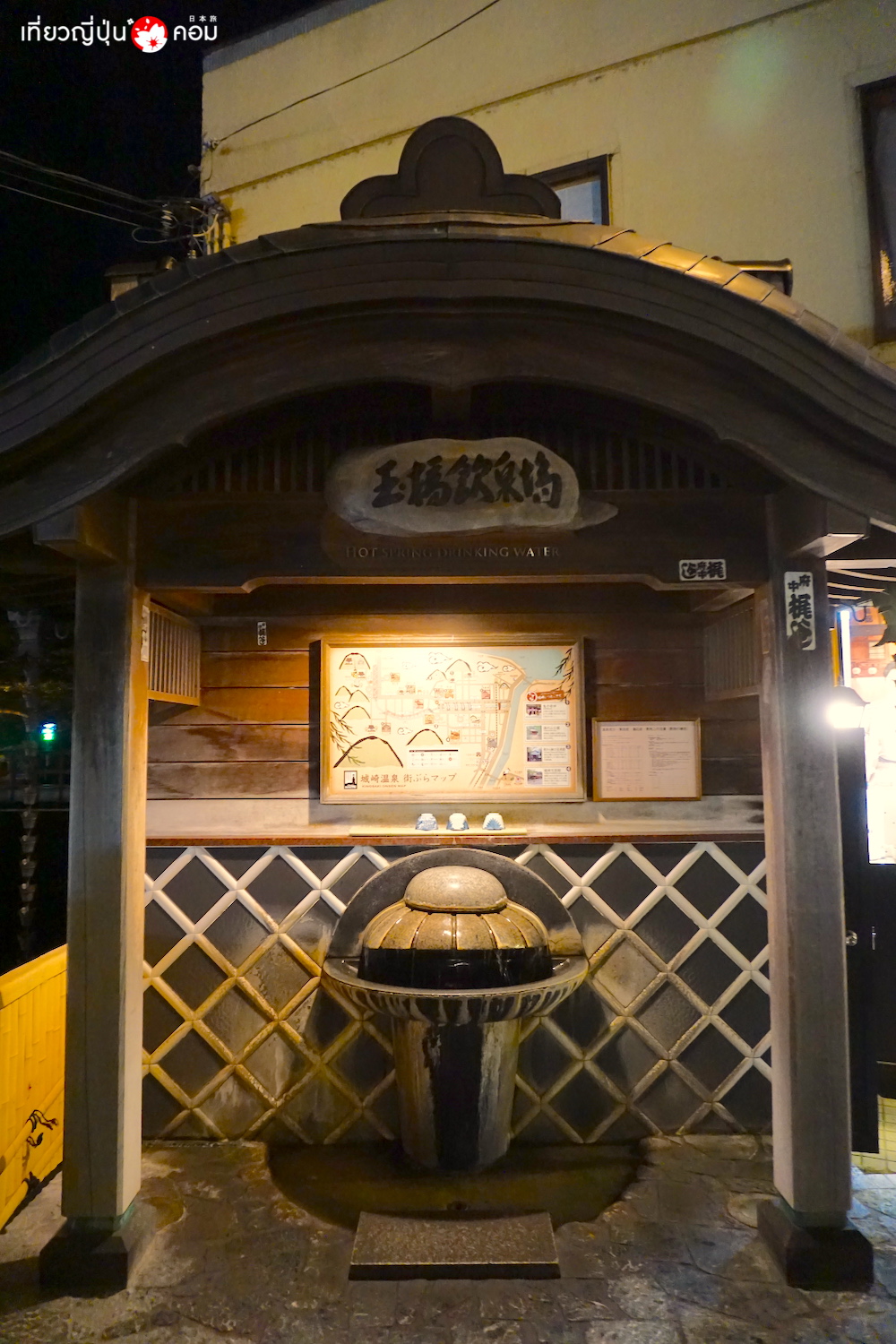 กิจกรรมที่แนะนำเมื่อมาถึง คือเดินมาชมต้นน้ำของน้ำพุร้อนในเมืองคิโนะซะกิอนเซ็นแห่งนี้