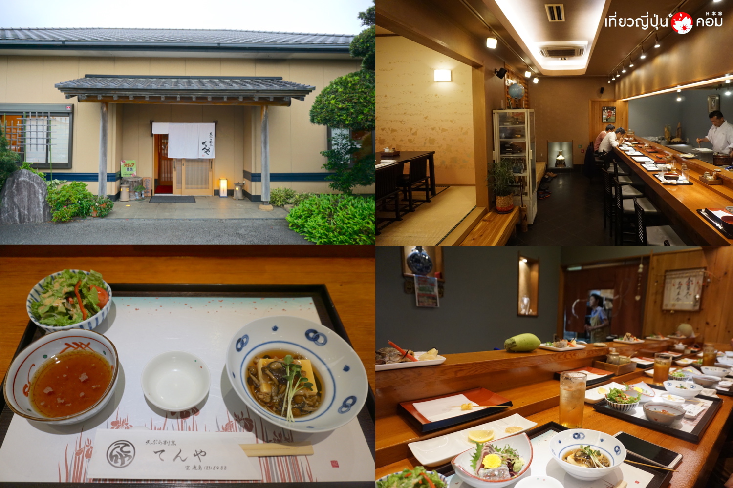 และมื้อหลักของวันนี้คือร้านเทมปุระชื่อดังของเมืองคาชิมะ ร้านนี้ชื่อว่า Tenya 天ぷら割烹 てんや มีความพิเศษตรงที่ จะมีเมนูตามใจเชฟหรือที่เรียกกันว่าสไตล์โอมะกะเซะ คือเราไม่ต้องสั่ง เชฟจะจัดให้
