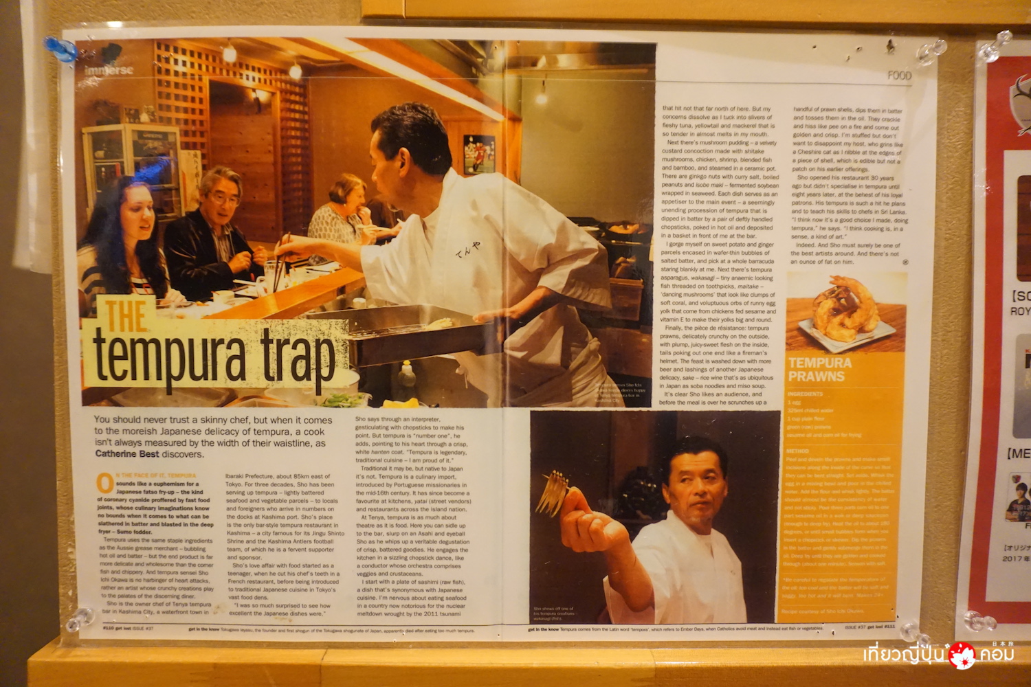 ที่พีคคือคุณลุงบอกว่าถ้าไปกินแบบเกาะเคาเตอร์ ให้เชฟเสิร์ฟส่วนตัวแบบนี้ในโตเกียว ต้องจ่ายแพงถึง 3 หมื่นเยนเลย แต่ถ้ามากินที่ร้านคุณลุง จ่ายเพียง 3 พันกว่าเยน ก็ได้ลิ้มรสความสุดยอดไม่แพ้กัน เพราะคุณลุงอยากให้ทุกคนได้มาสัมผัสความพิเศษของเทมปุระที่คุณลุงตั้งใจทำมานานกว่า 40 ปี