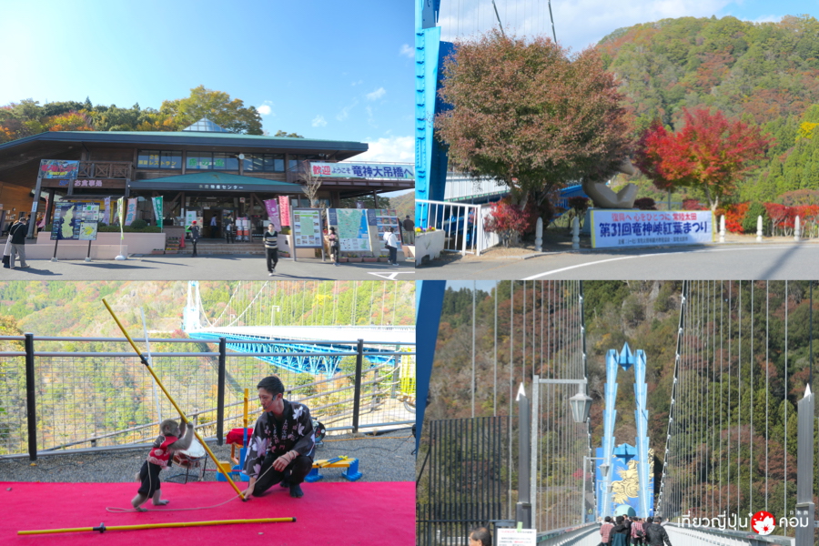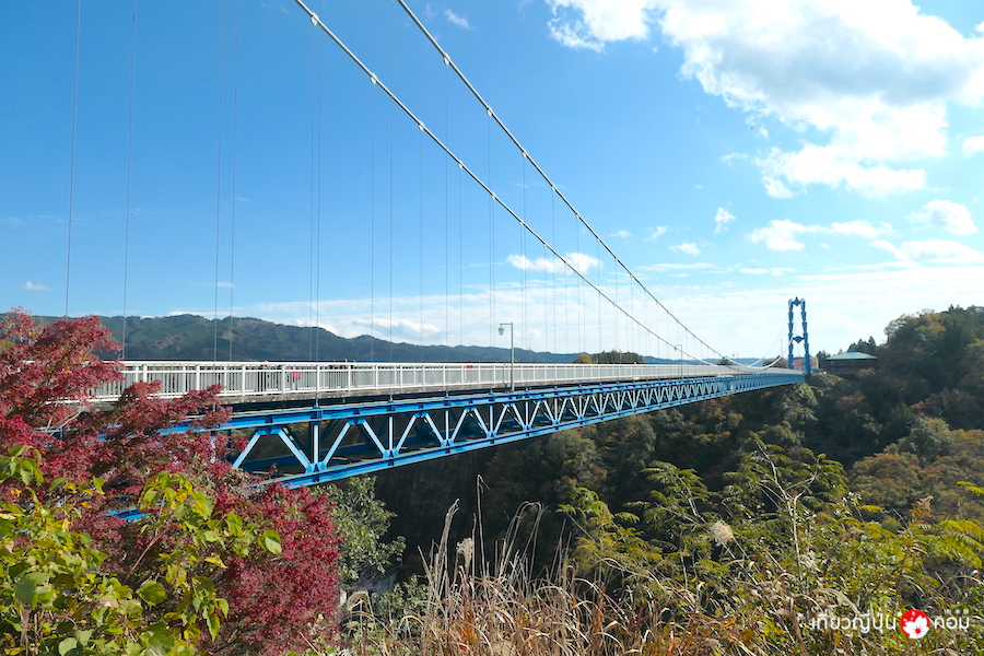 สะพานแขวนริวจิน (Ryujin Suspension Bridge) เป็นสะพานแขวนความสูงอันดับ 1 ของญี่ปุ่น ตั้งอยู่ที่เมืองฮิตาจิโอตะ (Hitachiota) ถูกสร้างขึ้นเหนือเขื่อนริวจิน โดยมีแม่น้ำจากเขื่อนไหลผ่านหุบเขาตัววีที่มีความสวยงามเป็นอย่างมาก สะพานมีความยาวทั้งหมดถึง 375 เมตร ซึ่งเป็นสะพานแขวนสำหรับคนเดินข้ามที่ยาวที่สุดในเกาะฮอนชูของญี่ปุ่น จากสะพานแขวนแห่งนี้ท่านสามารถมองเห็นวิวทิวทัศน์พาโนรามาอันสวยงามได้ตลอดทั้ง 4 ฤดูกาล ช่วงที่ใบไม้เปลี่ยนสีเต็มที่จะอยู่ราวต้นเดือนพฤษจิกายน