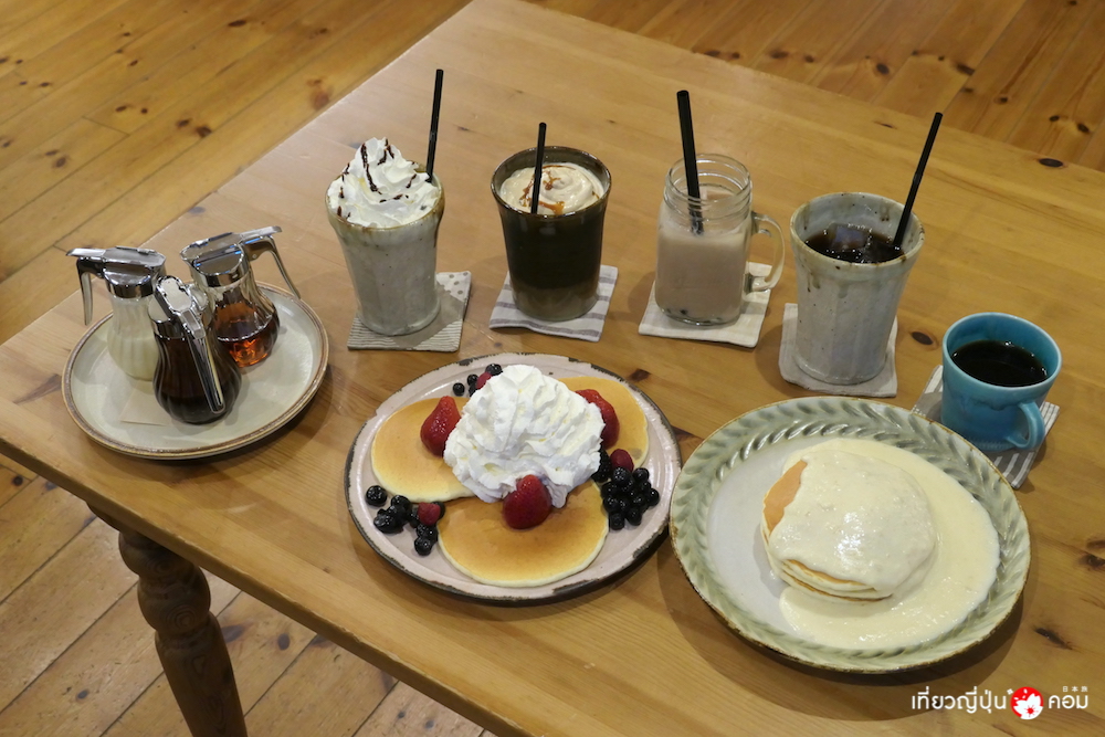 และถ้าใครชื่นชอบกิจกรรม cafe hopping ที่เมืองนี้ยังมีคาเฟ่น่ารักๆ ที่ใช้เครื่องจานชามท้องถิ่นเรียกว่า Kasama-yaki พร้อมขนมอร่อยให้ชิมกระจายอยู่ทั่วเมือง สำหรับวันนี้เราเลือกมาทานแพนเค้กกันที่ร้าน Le Midi Zakka & Cafe สำหรับเมนูแนะนำที่เราทานกันคือ Macadamia nut sauce pancake และ Berry & whip pancake ส่วนเครื่องดื่มก็มีชานมไข่มุกด้วยนะ