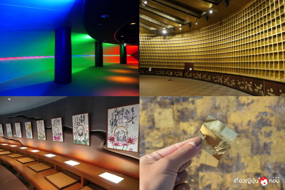 ขากลับเดินลงมาบริเวณชั้น 2 จะเป็นที่ตั้งของห้องสำหรับทำสมาธิ ด้วยการคัดลอกพระไตรปิฎกจากแผ่นกระดาษไข ซึ่งผู้ที่ไม่รู้ภาษาญี่ปุ่นก็สามารถเข้าร่วได้เนื่องจากเป็นการคัดลอกตัวอักษรจากกระดาษไขนั่นเอง นอกจากนี้เรายังสามารถทำการปิดทองด้านนอกองค์พระพุทธรูปได้ มีแผ่นทองไว้คอยให้บริการราคาแผ่นละ 300 เยน