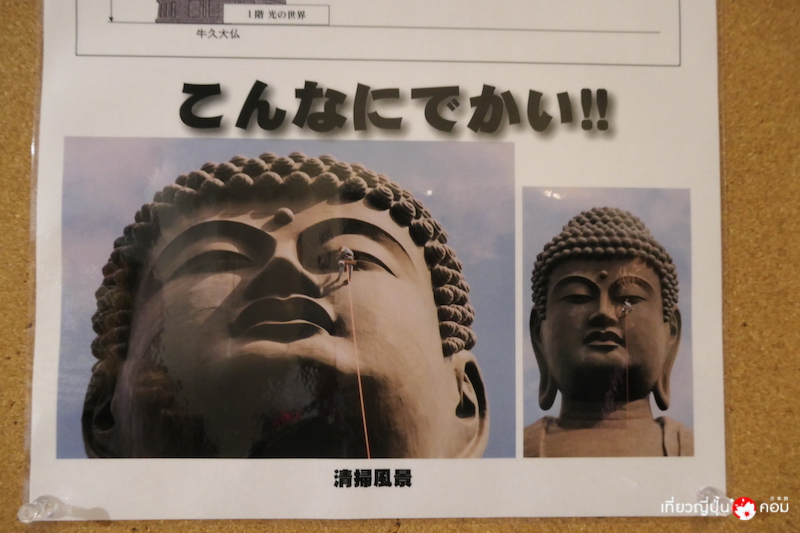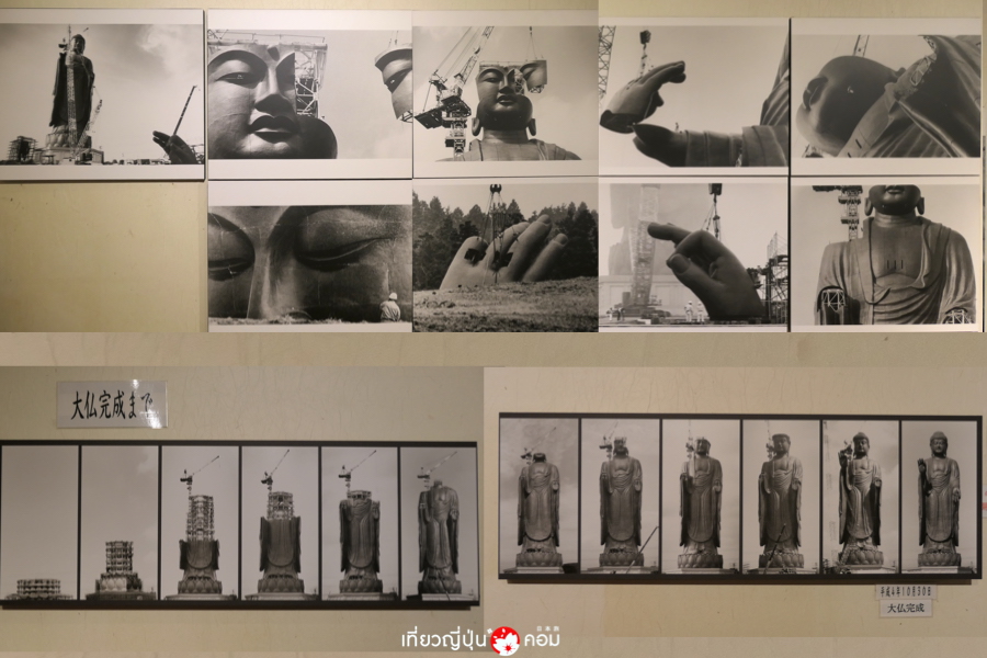 ภายในองค์พระพุทธรูปแบ่งออกเป็น 5 ชั้น แต่ละชั้นแบ่งเป็นส่วนจัดแสดงประวัติความเป็นมาในการสร้าง ห้องทำวัตรของพระสงฆ์ เมื่อขึ้นลิฟต์โดยสารไปยังจุดชมวิวบริเวณพระอุระที่มีความสูง 85 เมตร นักท่องเที่ยวสามารถมองเห็นทัศนียภาพได้ไกลสุดลูกหูลูกตา ในวันที่อากาศดีจะสามารถมองไปได้ไกลถึงภูเขาไฟฟูจิโตเกียวสกายทรี