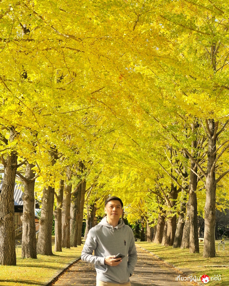 พิพิธภัณฑ์ประวัติศาสตร์จังหวัดอิบะระกิ (Ibaraki Prefectural Museum of History) เพื่อมาชมบรรยากาศต้นแปะก๊วยที่พร้อมใจกันเปลี่ยนสีเป็นสีเหลืองทองไปทั่วทั้งบริเวณภายในสวน
