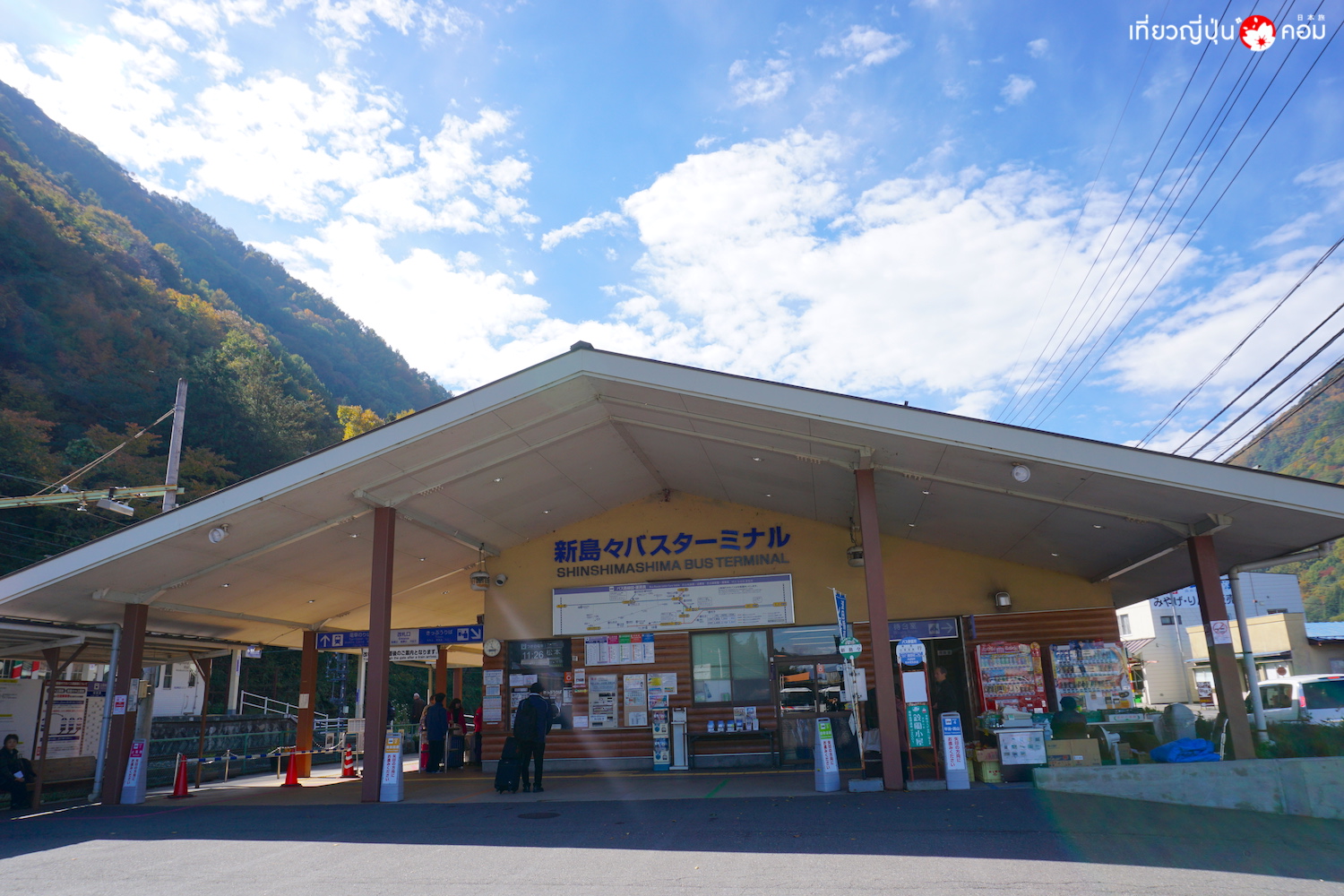 เมื่อทำการซื้อพาสรถบัสแล้ว ย้อนกลับมาที่สถานีรถไฟ เพื่อขึ้นรถไฟ Alpico train (สาย Kamikochi) ที่ชานชาลาหมายเลข 7 มาลงที่สุดสายสถานี Shin-Shimashima ซึ่งเป็นสถานีศูนย์กลาง สำหรับต่อรถบัสไปยังสถานที่เที่ยวต่างๆ อาทิ คามิโคจิ, ชิราโฮเนะอนเซ็น, ฮิรายุอนเซ็น, ทะคะยะมะ