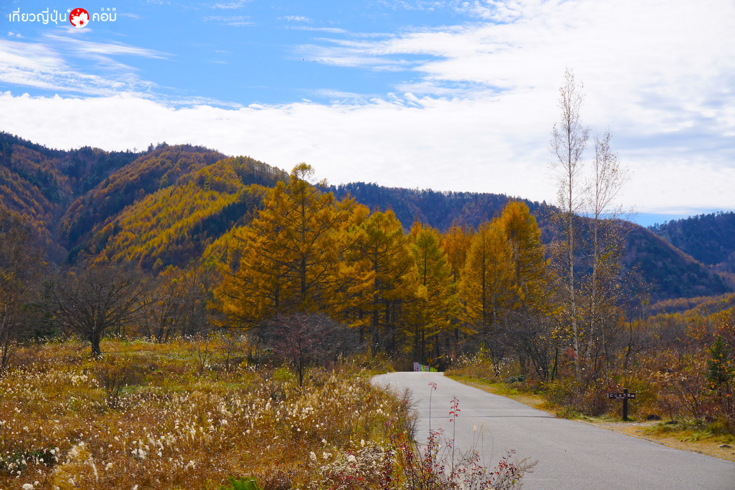 จาก Tourist center นั่งรถบัสขึ้นเขาไปบนยอดที่ ทะทะมิไดระ (Tatamidaira) ใช้เวลา 50 นาที รถบัสสายนี้จะวิ่งไปตามถนน Norikura Echo Line ซึ่งมีชื่อเสียงมากเรื่องใบไม้เปลี่ยนสี โดยช่วงพีคจะอยู่ช่วงปลายกันยายนถึงต้นตุลาคม ยิ่งขึ้นไปสูงเท่าไหร่ก็ยิ่งเห็นถนนที่คดเคี้ยวไปมาตามระดับความสูง ที่สำคัญยังได้ชื่นชม Sandankoyo หรือต้นไม้เปลี่ยนสี 3 ชั้น ไล่สีแดง เหลือง เขียว ตัดกับหิมะบนภูเขา ถนนสายนี้เป็นสถานที่แรกๆที่จะได้ชมใบไม้เปลี่ยนสีก่อนใครในญี่ปุ่น เริ่มตั้งแต่ปลายเดือนกันยายน จนถึงปลายเดือนตุลาคม และเราจะยังได้พบกับพืชพันธุ์ที่หาชมได้เฉพาะในเขตแอลป์เท่านั้นด้วย
