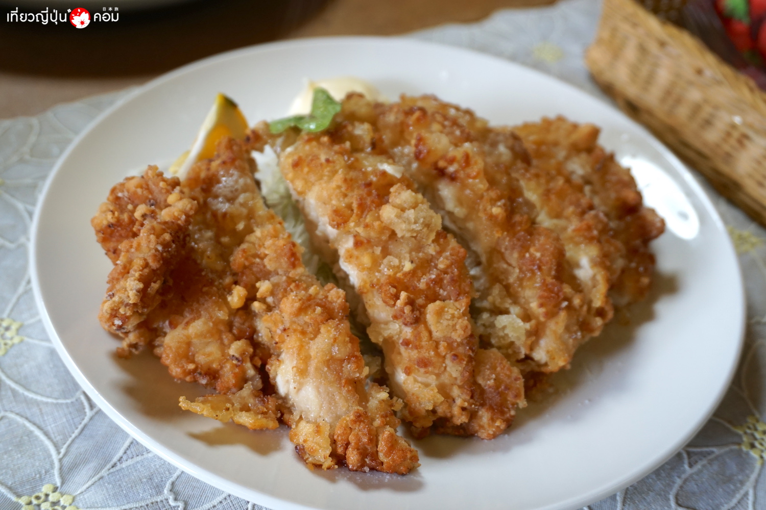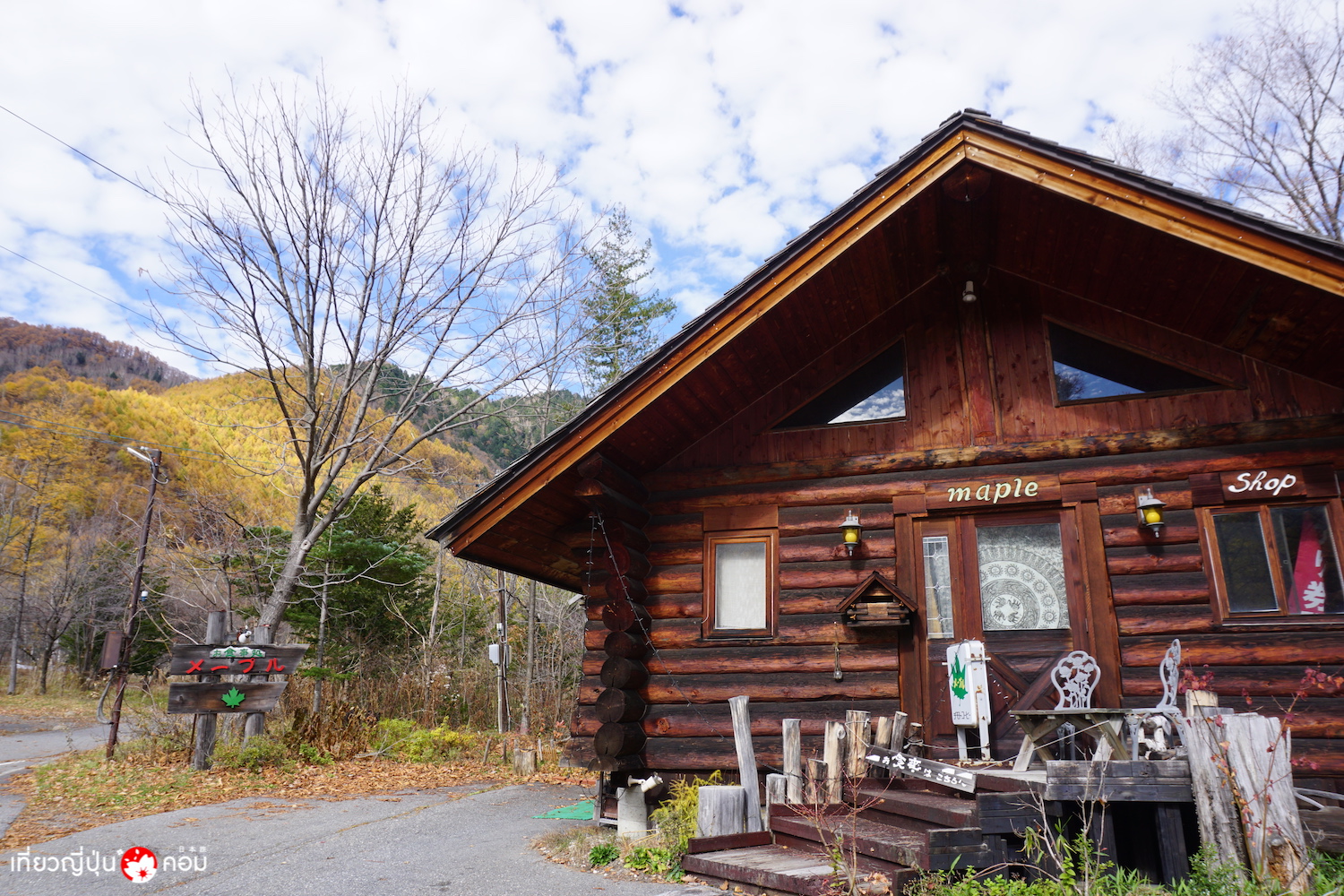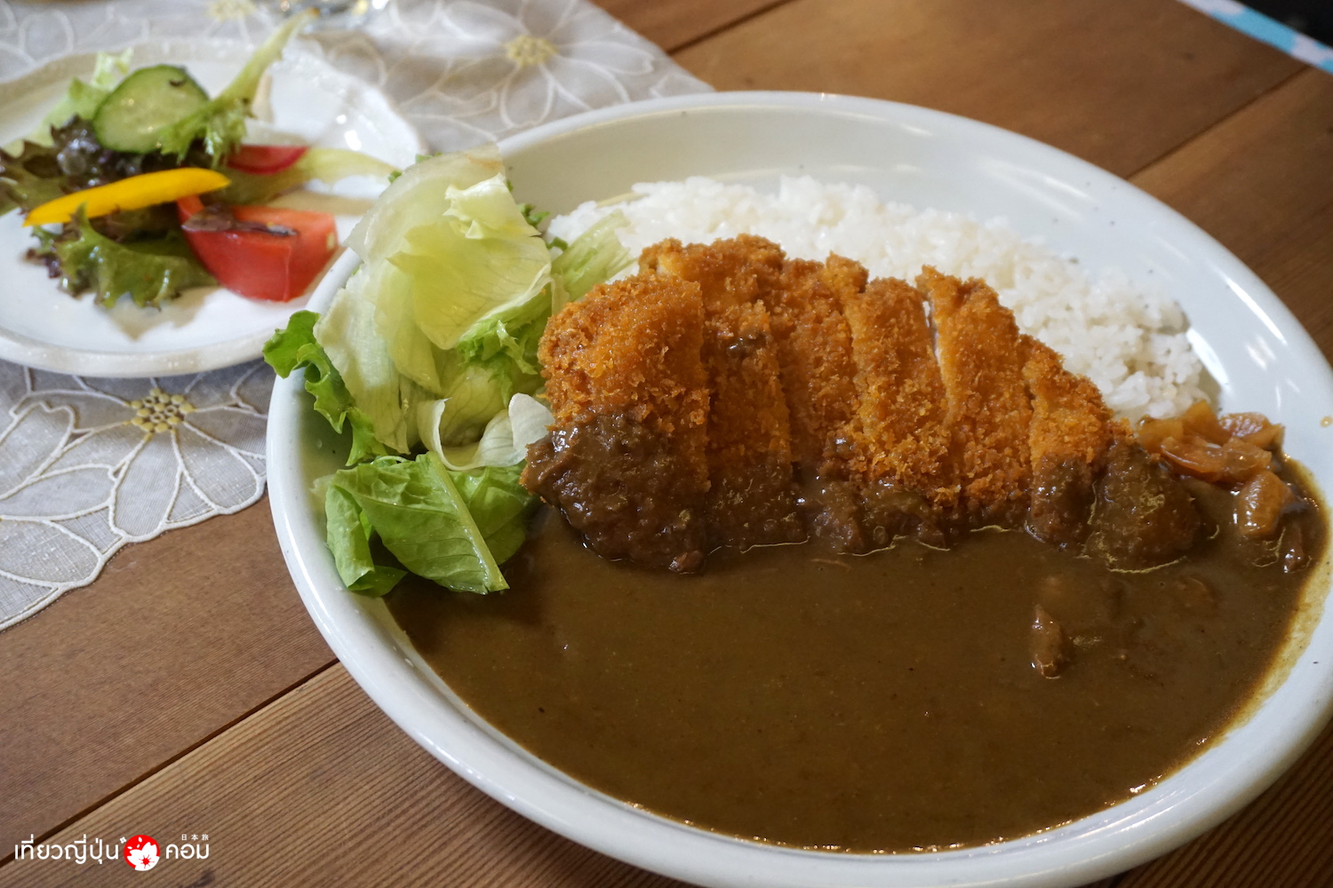 มื้อเที่ยงเรามาทานกันที่ร้านโลคอล ชื่อว่า Maple เดินจาก Tourist center เพียง 2 นาที มีเมนูดัง ไก่ทอดซันโซคุ (Sanzoku fried chicken) หมักด้วยโชยุ ขิง กระเทียม จึงมีรสชาติที่แตกต่างจากไก่ทอดทั่วไป ตอนทานต้องบีบส้มแทนมะนาว มีเมนูแกงกะหรี่ด้วย ราคา 900 เยน (มีเมนูภาษาอังกฤษ)