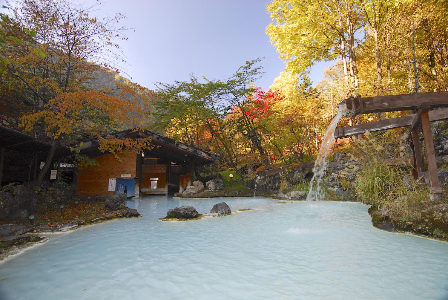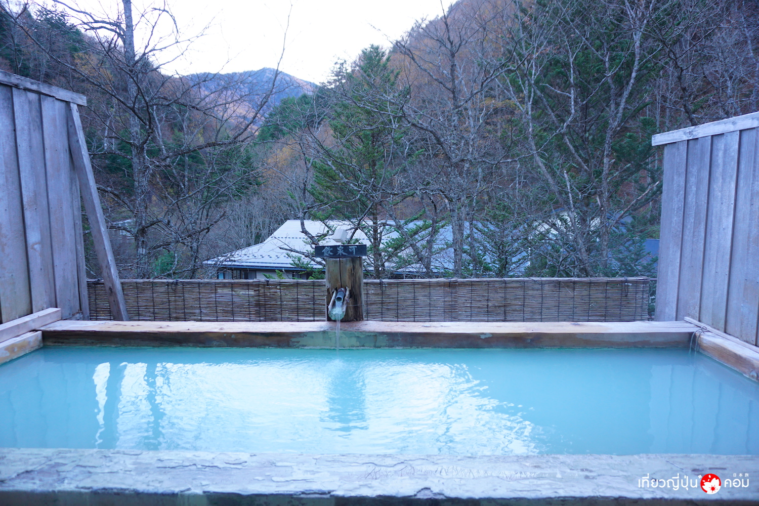 หลังจากเดินเที่ยวกันเหนื่อยแล้ว ก็ถึงเวลามาพักผ่อนคลายความเมื่อยล้ากันที่ ชิระโฮเนะออนเซ็น (Shirahone onsen) แปลตรงตัวว่า ออนเซ็นกระดูกขาว เนื่องจากน้ำออนเซ็นที่นี่จะมีสีขาวขุ่นเหมือนกับสีของกระดูกนั่นเอง วันนี้เราเลือกใช้บริการกันที่ ไบโคะอัง (Baikoan) ที่สามารถแช่ออนเซ็นแบบชั่วคราว หรือจะค้างคืนก็ได้ เช่นกัน ค่าเข้า ผู้ใหญ่ 700 เยน เด็ก (ประถมต้น) 300 เยน