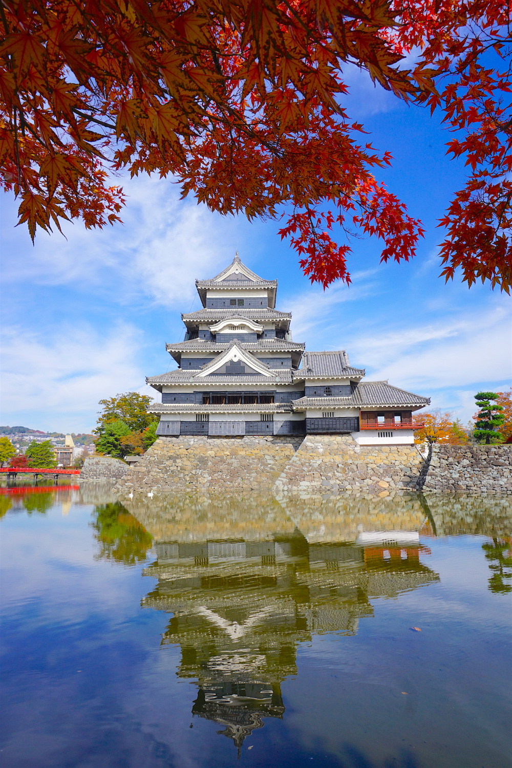 ปราสาทมัตสึโมโตะ (Matsumoto Castle) สมบัติประจำชาติ อายุ 400 ปี เป็นปราสาทที่สร้างบนพื้นราบ (ปราสาทญี่ปุ่นมี 3 ประเภทคือ บนภูเขา บนเนินเขา และพื้นราบ) จึงต้องสร้างคูน้ำล้อมรอบไว้ 3 ชั้น ปัจจุบันรอบนอกชั้นที่ 2 และ 3 เหลือเพียงบางส่วน สมัยก่อนคลองชั้นในจะลึกถึง 3 เมตร และเป็นน้ำดำสกปรก เพื่อให้ข้าศึกเดาไม่ออกว่าลึกเท่าไหร่