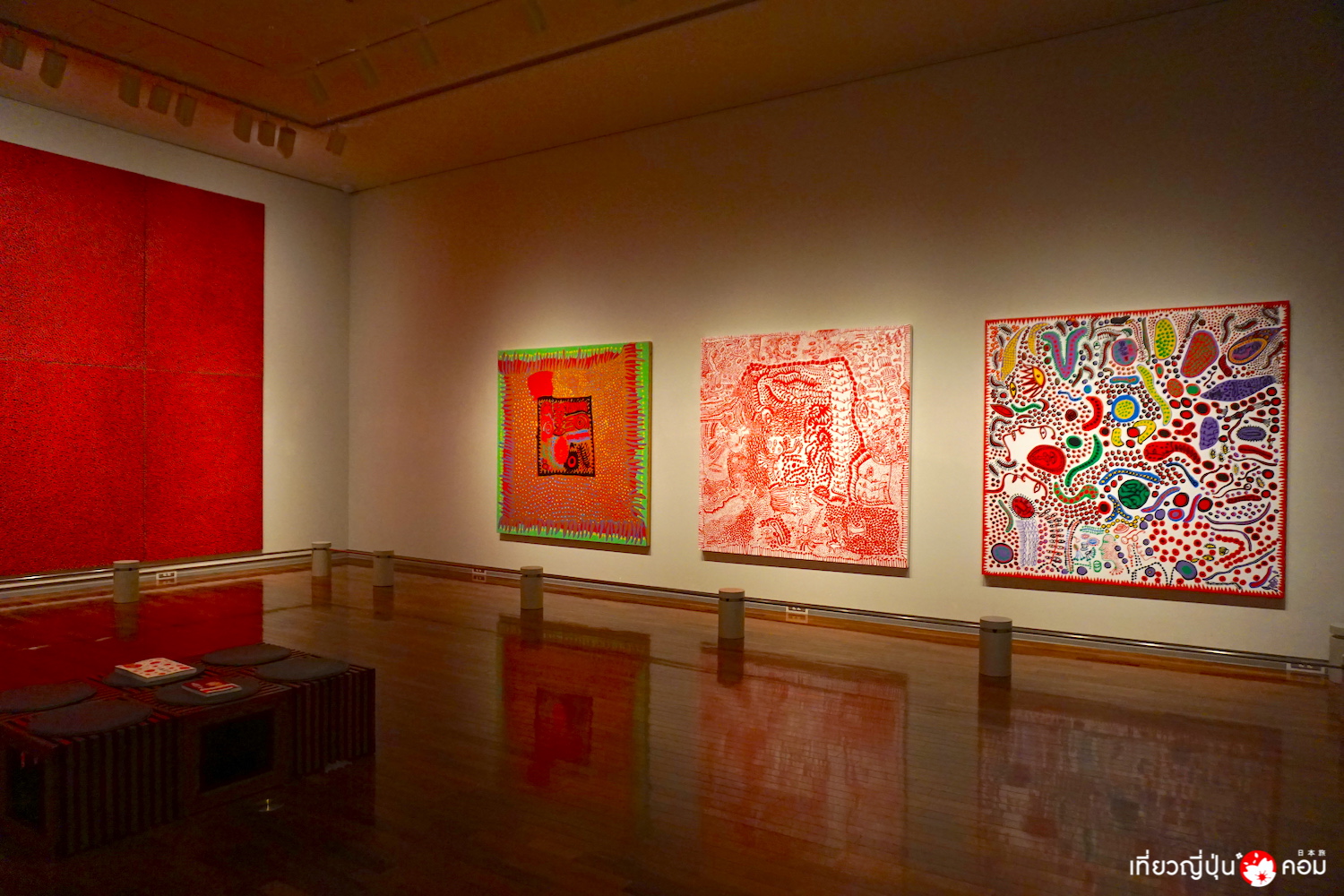 คุณยะโยอิ เริ่มเขียนลายจุด โดยการนำความกลัวจุด มาถ่ายทอดผ่านผลงาน จึงเป็นที่มาของผลงานลายจุดอันโด่งดังไปทั่วโลก ด้านในจัดแสดงผลงานส่วนหนึ่งของชุด eternal soul ส่งข้อความผ่านผลงานว่านี่อาจเป็นผลงานชุดสุดท้ายที่ได้ทำ มีกว่า 500 ชิ้น