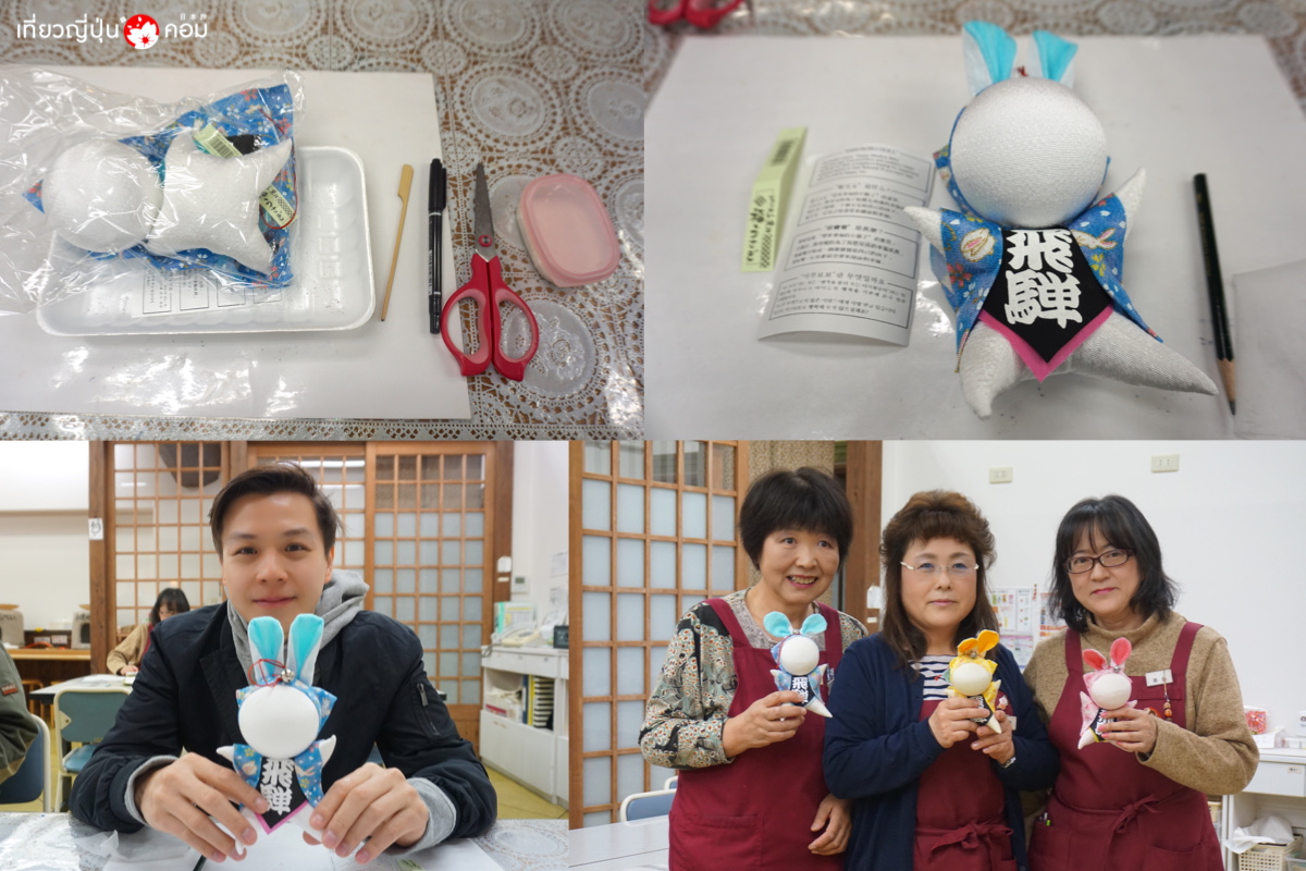 กิจกรรมต่อมา เราเดินทางมาที่ Hida Takayama Crafts Experience Center ที่ตั้งอยู่ไม่ไกลกันมาก เพื่อมาลองทำตุ๊กตานำโชค ซารุโบโบะ (Sarubobo) ที่เป็นสัญลักษณ์แห่งความโชคดีในพื้นที่เขตฮิดะ ทำไมซารุโบโบะจึงต้องไร้หน้า? เพราะว่า เมื่อซารุโบโบะไม่มีหน้าตา จะทำให้ผู้ที่ครอบครองได้จินตนาการ ไม่ว่าในยามสุขหรือยามทุกข์ ก็สามารถถ่ายทอดความรู้สึกให้ผ่านมาทางสีหน้าของซารุโบโบะได้