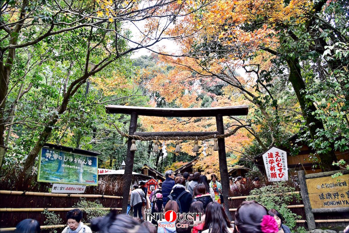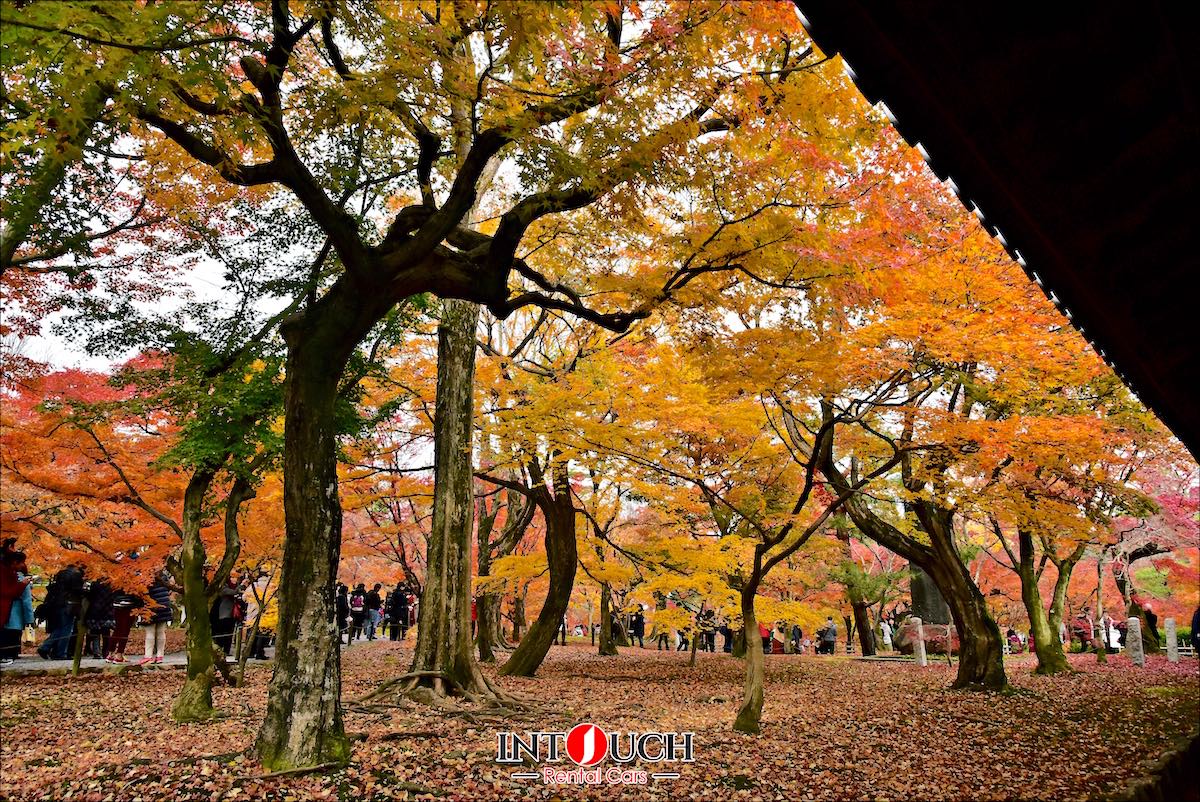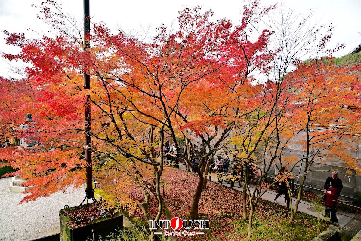 ศาลเจ้าคิตาโนะเทนมังกู (Kitano Tenmangu) เป็นสถานที่ที่มีชื่อเสียงในช่วงฤดูใบไม้ผลิ แต่ในช่วงไม่กี่ปีที่ผ่านมานี้มีการเปิดให้เข้าชมบริเวณสวนของศาลเจ้าในช่วงฤดูใบไม้ร่วงซึ่งกลายเป็นจุดชมใบไม้เปลี่ยนสีที่โด่งดัง ทั้งนี้ยังมีการส่องไฟภายในสวนในตอนกลางคืน เผยให้เห็นถึงต้นเมเปิ้ลมากกว่า 250 ต้นอีกด้วย สวนเปิดให้เข้าชมในช่วงปลายเดือนพฤศจิกายนถึงต้นเดือนธันวาคม