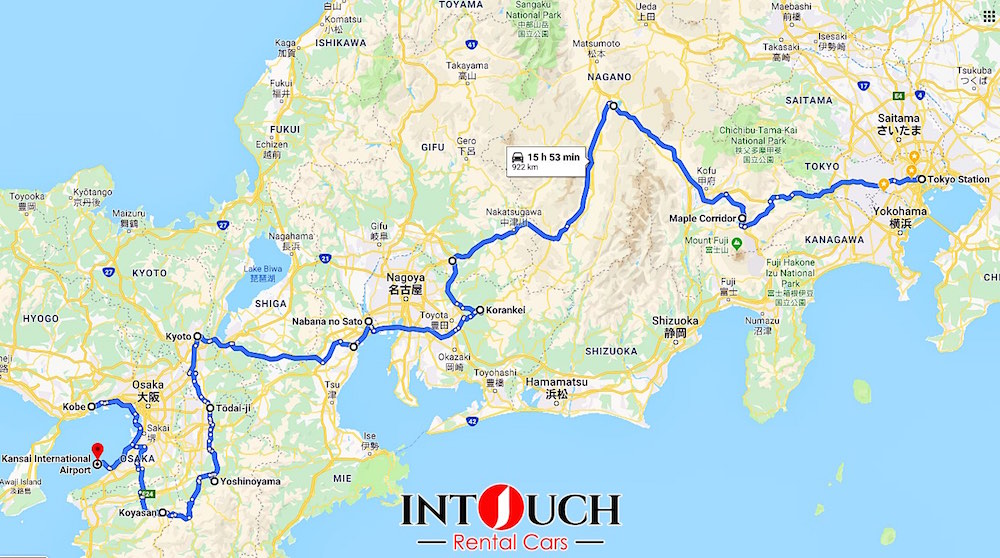 และวันนี้ทางทีม Intouch Rental Cars อยากจะมาแนะนำเส้นทางขับรถชมใบไม้เปลี่ยนในแถบภาคกลางของญี่ปุ่น ระหว่าง ภูมิภาค Kanto – Chubu – Kansai โดยเริ่มเดินทางจาก Tokyo > Nagoya > Kyoto > Nara > Koya > Osaka > Kobe เผื่อใครที่อยากไปขับรถเที่ยวญี่ปุ่นเร็วๆนี้ ก็สามารถเอาไปใช้เป็นไอเดียได้เลยค่ะ