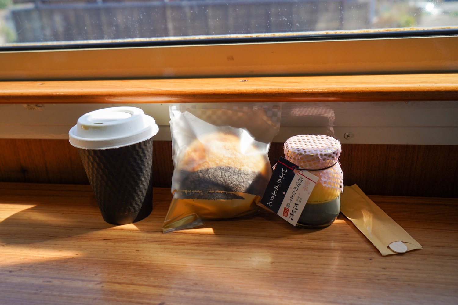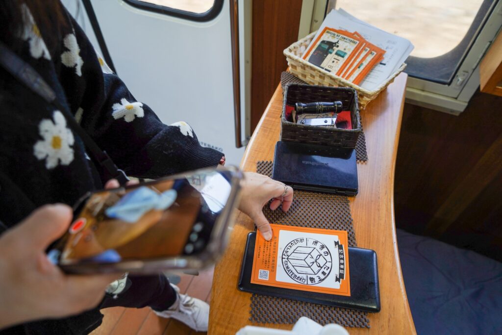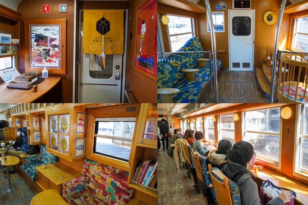 เมื่อนั่งรถไฟไปได้สักพักจะเริ่มเห็นทิวทัศน์ของภูเขาไฟซากุระจิมะ และอ่าวกิงโกะอันสวยงามจากหน้าต่างแบบกว้างของรถไฟ ห้ามพลาดกับพุดดิ้งงาดำ และขนมปังไส้ช็อคโกแลตที่แบ่งเป็นสองสีชัดเจนเหมือนกับสีของรถไฟ