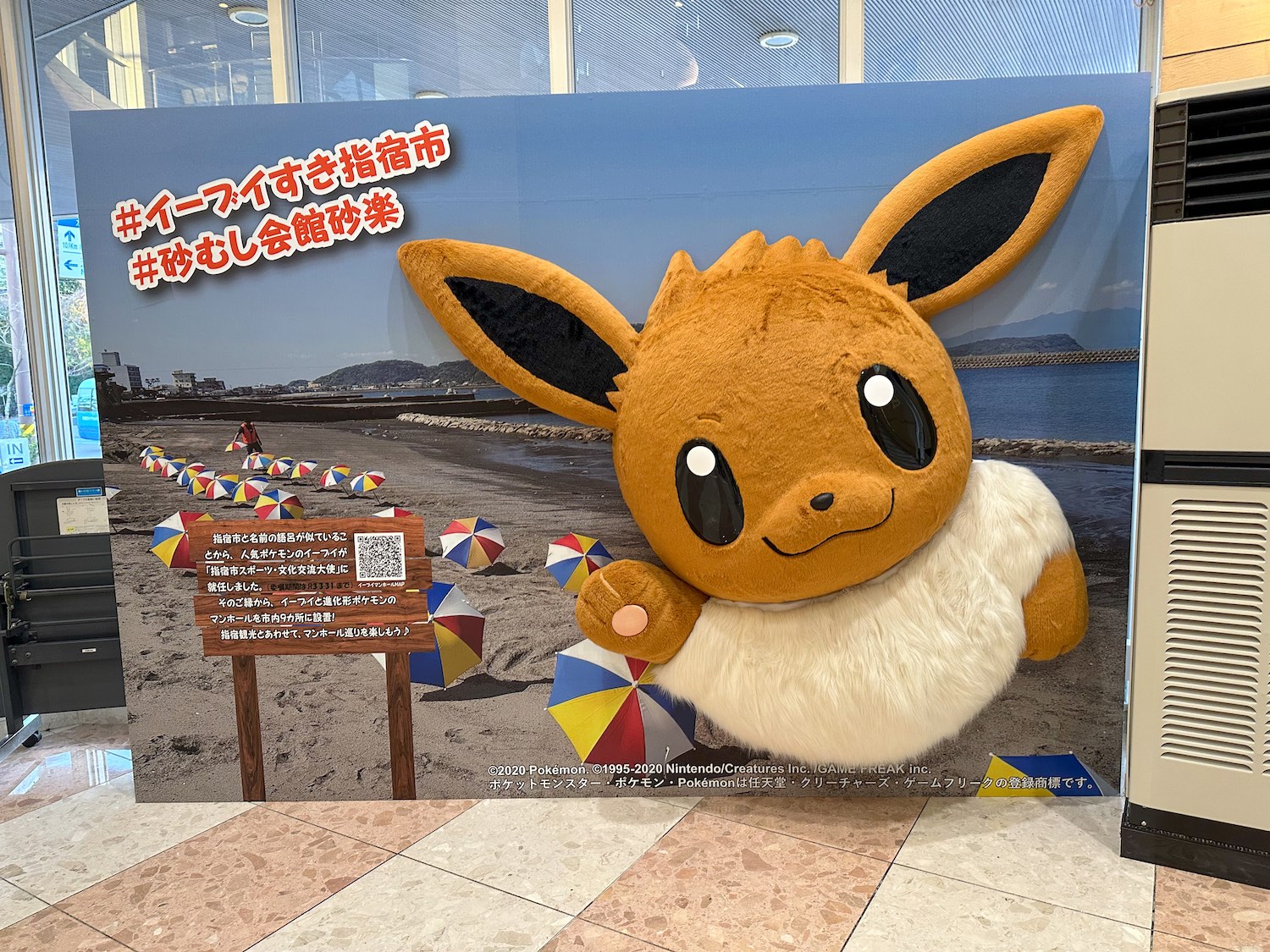 สำหรับแฟนๆ Pokemon เมื่อมาถึงเมืองอิบุสึกิต้องไม่พลาดมิชชั่นมาเดิน ตามหาลายฝาท่อที่เป็นลายอีบุย (Eevee) ที่มีชื่อคล้ายกับเมือง โดยชื่อเมือง Ibusuki มันจะออกเสียงคล้ายๆ “i-bui-suki” ที่แปลว่า”ฉันชอบอีบุย” ทางเมืองจึงนำโปเกม่อนตัวนี้เป็นมาสคอตของเมือง โปรโมททำฝาท่ออีบุย สามารถเจอฝาท่อได้ตั้งแต่หน้าสถานีอิบุสึกิเลย