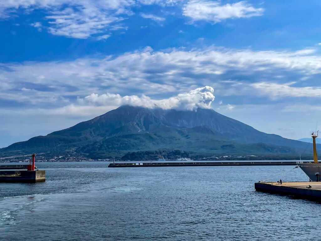 7. ภูเขาไฟซากุระจิมะ ภูเขาไฟที่ยังไม่ดับและในบางวันก็จะได้เห็นการปะทุเบาๆ มองเห็นได้จากที่ไกลๆ บนเกาะมีกิจกรรมหลากหลาย อาทิ ปีนเขา, เดินป่า, เซิร์ฟบอร์ด, คาเฟ่สุดชิค, ร้านอาหาร, เก็บส้มที่สวนส้ม, ออนเซน การเดินทางภายในเกาะสามารถนั่งรถบัสเที่ยวรอบเกาะ, เช่ารถขับ, ปั่นจักรยาน และแท็กซี่