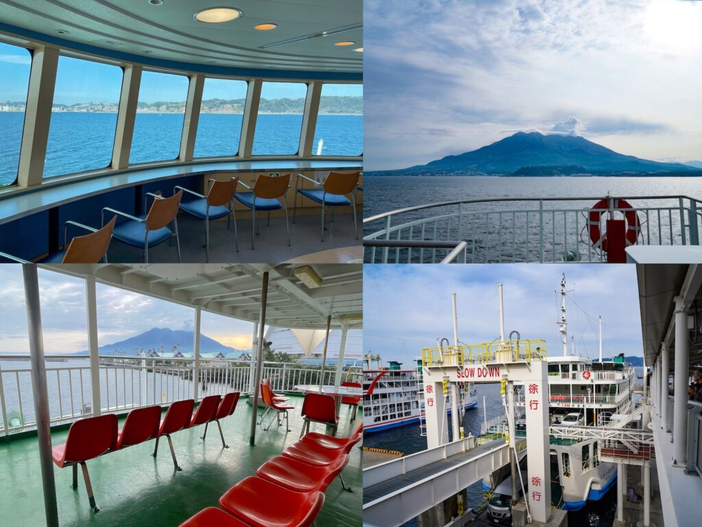 การเดินทาง: จากสถานี Kagoshima-chuo ไปยังท่าเรือเฟอร์รี่ ใช้เวลาประมาณ 14 นาที โดยรถยนต์ หรือ 22 นาที โดยรถราง Kagoshima City Tram No. 2