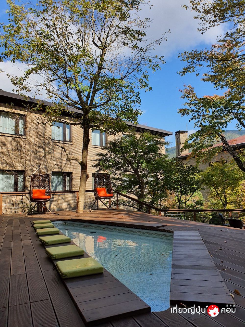 อาคารโรงแรมติดกับสวน ที่เพียบพร้อมไปด้วยสิ่งช่วยให้ผ่อนคลายต่างๆอย่าง เปลญวน บ่อแช่เท้า ที่ก่อกองไฟ ตัวโรงแรมคล้ายคอนโดมิเนียมซึ่งในห้องพักมีห้องครัว และออนเซ็นที่สามารถชมวิวได้ ให้บริการที่พักพร้อมห้องอาหาร ที่จอดรถส่วนตัวฟรี เลานจ์ส่วนกลาง และลานระเบียง ที่มีบ่อน้ำพุร้อนแช่เท้า WiFiฟรีทั่วบริเวณ และมีบริการบุฟเฟต์อาหารเช้าและอาหารค่ำทุกวัน