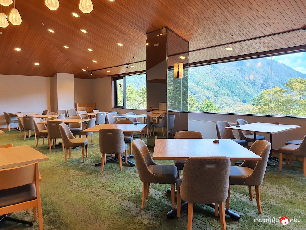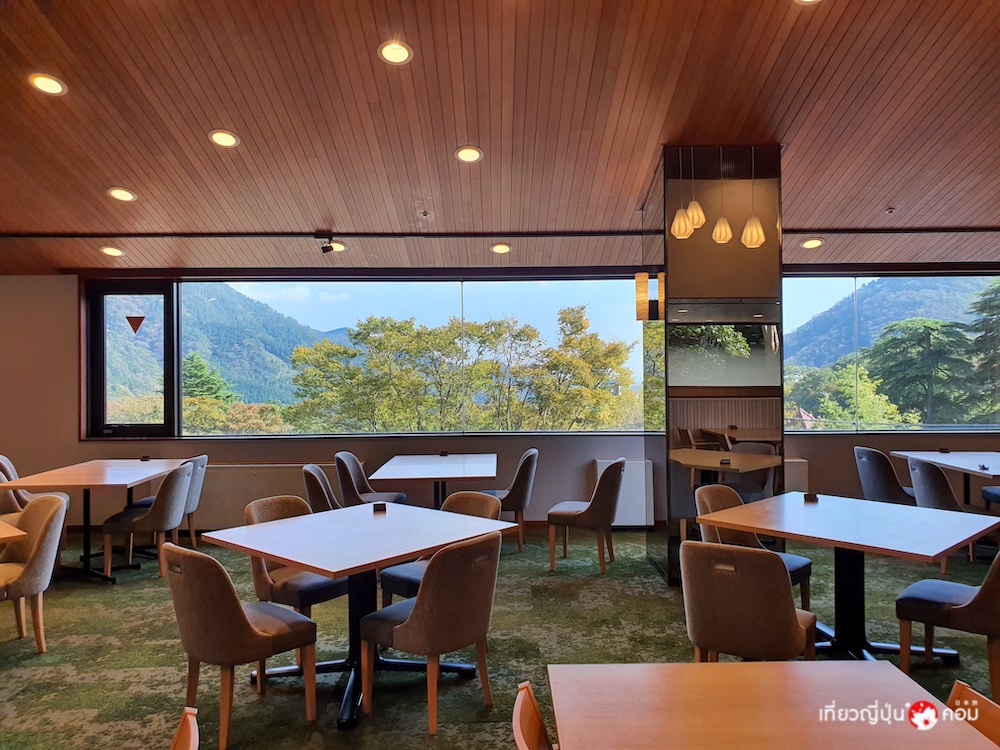 ห้องอาหารของโรงแรมจะอยู่ในส่วนของฝั่งอาคาร “East and West Wing” พร้อมด้วยอาหารสไตล์บุฟเฟต์ทั้งญี่ปุ่นและตะวันตก และชุดอาหารหลักแบบญี่ปุ่นเป็นมื้อค่ำ ผู้เข้าพักสามารถทานอาหารพร้อมชมวิวของภูเขาเบื้องหน้าผ่านกระจกบานใหญ่