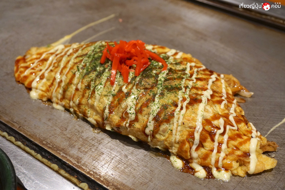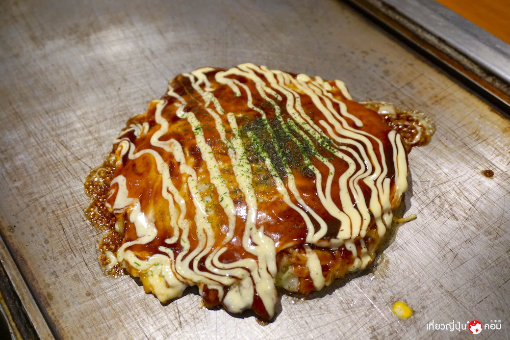 Okonomiyaki พิซซ่าญี่ปุ่น ไส้ต่างๆ มีให้เลือก ทั้ง เนื้อหมู เนื้อวัว กุ้ง หรือถ้าใครชอบทางต้นหอมญี่ปุ่นแบบเน้นๆ ก็สามารถเลือกสั่งเมนู Negiyaki ได้ ราคาเริ่มต้น 980 เยน