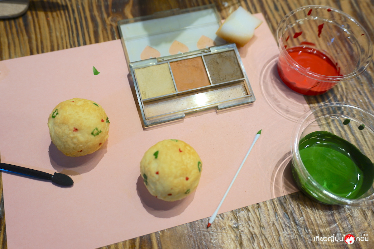 เราเลือกทำทาโกยากิ เป็นแบบที่ง่ายที่สุด ใช้เวลาประมาณ 30 นาที ค่าใช้จ่ายคนละ 2,480 เยน ได้ 2 ลูก สามารถเลือกเป็นพวงกุญแจ หรือแม่เหล็กก็ได้ และอันนี้เป็นฝีมือของแอดมิ
