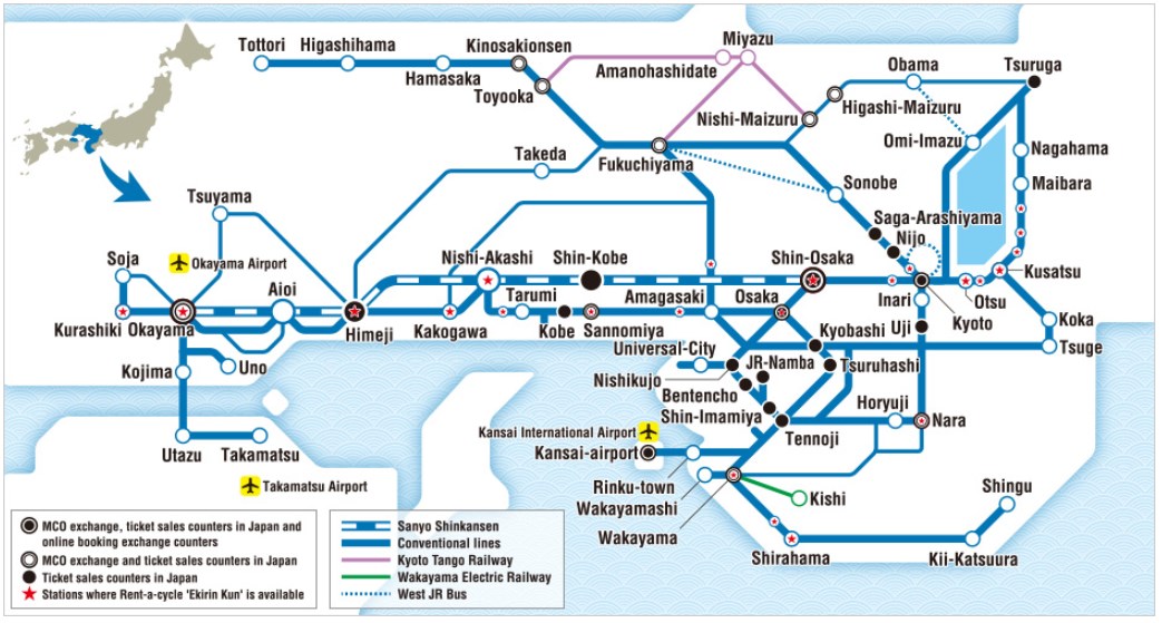 โดยการเดินทางในครั้งนี้เราใช้ตั๋วเดินทางแบบประหยัดด้วยพาส JR Kansai Wide Area Pass ที่จะพาเราตะลอนไปทั่วทั้งภูมิภาคคันไซ เหมาะสำหรับผู้ที่ชอบความรวดเร็ว เนื่องจากตัวพาสนี้สามารถใช้โดยสารรถไฟ Shinkansen สาย Sanyo ได้อีกด้วย ซึ่งเป็นเส้นทางรถไฟที่วิ่งตรงจากโอซาก้าสู่เมืองโอคายามะทำให้ประหยัดเวลาในการเดินทางได้มากกว่ารถไฟ Local และยังครอบคลุมเส้นทางการเดินทางท่องเที่ยว อีกทั้งยังสามารถใช้ได้ทั้งหมด 5 วัน