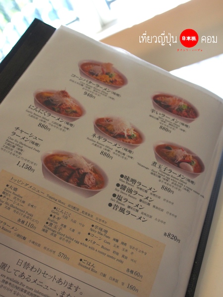 น้ำซุปจะมีแต่น้ำซุปมิโซะเท่านั้น แต่มีท้อปปิ้งอย่างอื่น เข่น ข้าวโพด, เนย, หัวหอม. ต้นหอม, พริก, ไข่ต้ม,หมูชาชู เป็นต้น