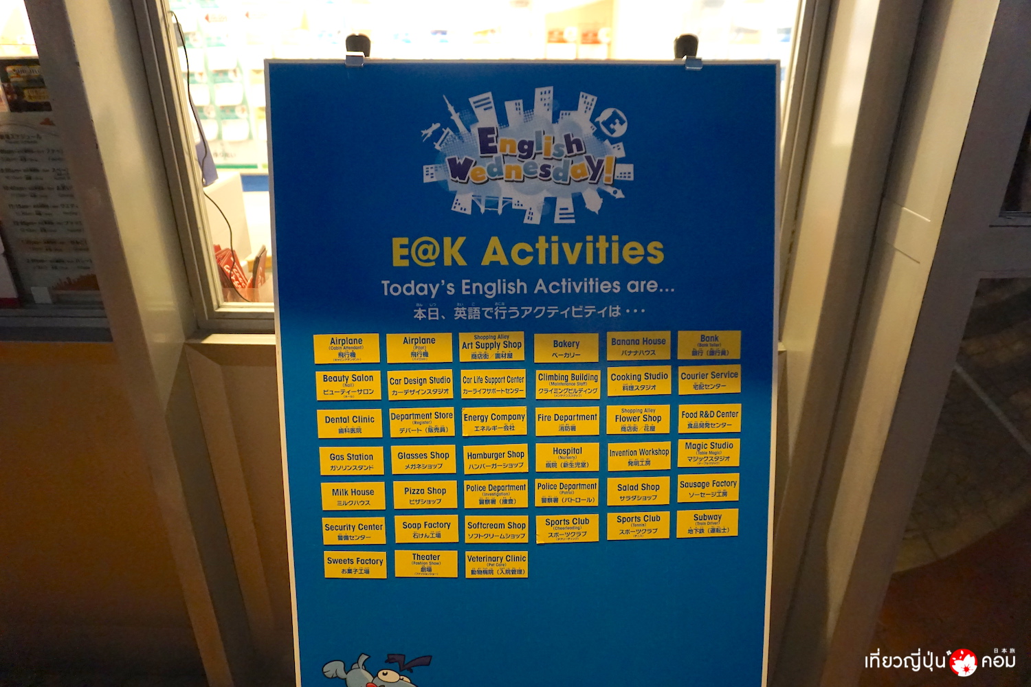 ถึงแม้กิจกรรมส่วนใหญ่จะดำเนินด้วยภาษาญี่ปุ่นเป็นหลัก แต่ก็จะมีเจ้าหน้าที่พิเศษประจำแต่ละสถานี คอยดำเนินกิจกรรมเป็นภาษาอังกฤษให้ด้วย สามารถดูรายละเอียดว่ากิจกรรมไหนเปิดเป็นภาษาอังกฤษได้จากป้ายบริเวณด้านหน้า