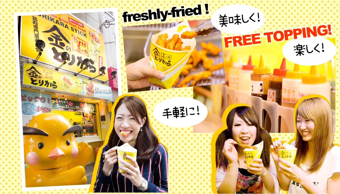 ถ้าพูดถึงสตรีทฟู้ดของญี่ปุ่น ต้องมีไก่ทอดสีเหลือง ยี่ห้อ Kin no Torikara 金のとりから ลูกเจี๊ยบ สุดแซ่บส์ ติดโผอย่างแน่นอน เนื้ออกไก่ หั่นเป็นชิ้นพอดีคำ ทอดใหม่ๆ สดๆ ร้อนๆ ชุปแป้งทอด กรุบกรอบ ทานอร่อย แบบหยุดไม่ได้ ทั้งหมดนี้ ไม่ได้โม้ รับรองว่า ได้ชิมละ จะติดใจไม่มีวันลืม