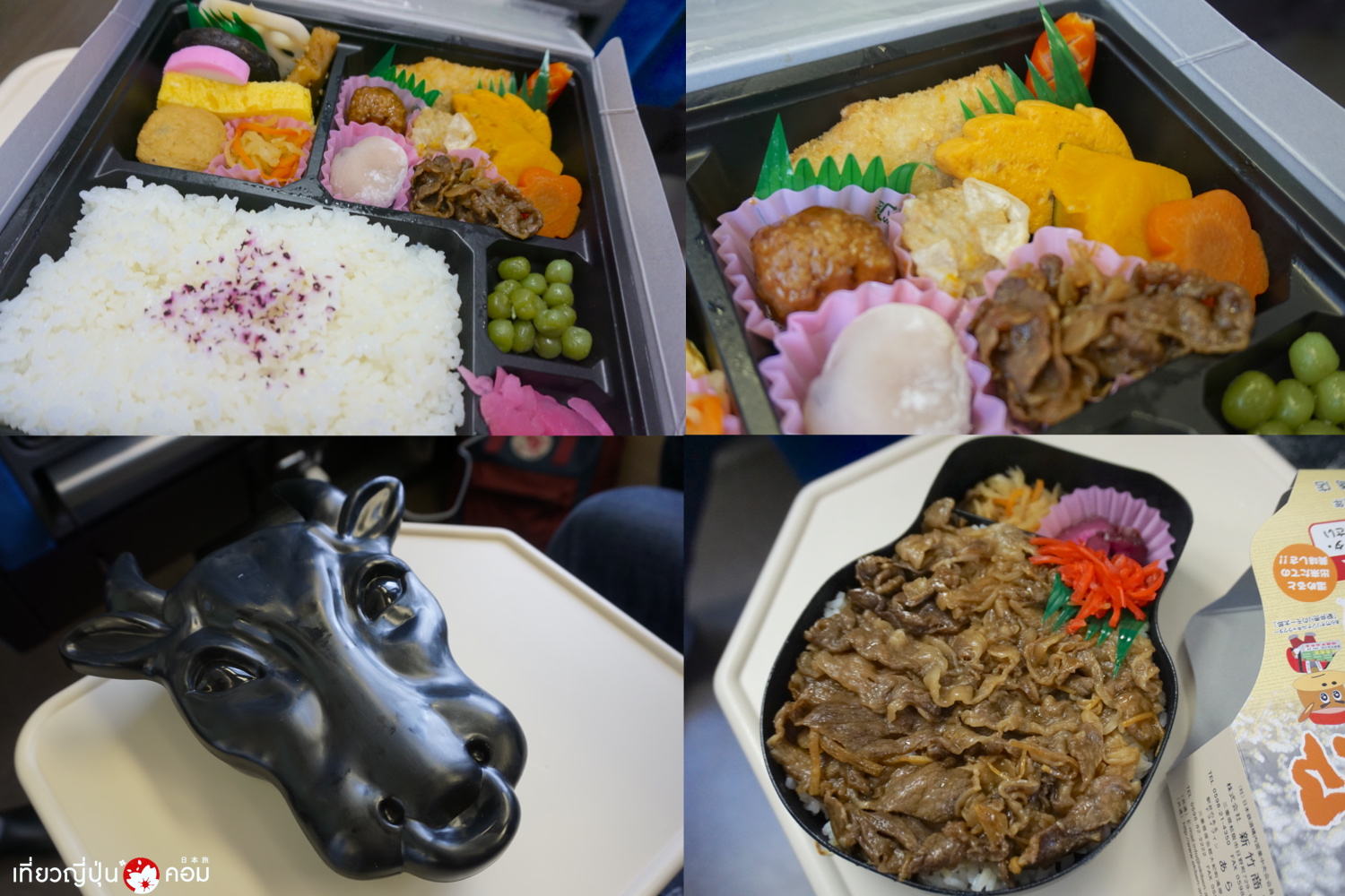 ขึ้นรถไฟนานๆต้องจัดเอคิเบ็นกันบนรถไฟสักหน่อย สำหรับคนชอบเนื้อ ต้องลองข้าวกล่องหน้าเนื้อมัตสึซะกะ ที่มีเเพคเกจจิ้งเป็นรูปวัวสีดำ เปิดฝาออกมามีเสียงเพลงด้วย ~