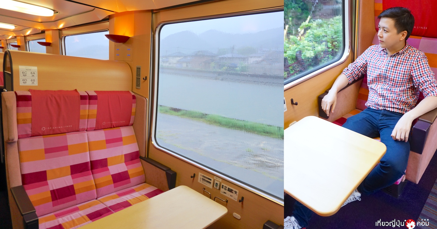 จากสถานี Ugata เราจะขึ้นรถไฟขบวนพิเศษ ISE-SHIMA LINER ไปยังสถานี Kuwana กัน โดยรถไฟขบวนนี้จะวิ่งไปสุดสายที่สถานี Nagoya ครับ สามารถใช้ Kintetsu Rail Pass ขึ้นได้ แต่จะต้องทำการจองที่นั่งและซื้อตั๋ว Limited Express เพิ่ม ในราคา 1,320 เยน หรือถ้าสนใจอยากนั่ง Deluxe seat จ่ายเพิ่มในราคา 1,620 เยน