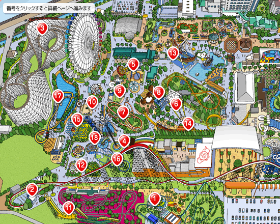 ภายในโซนสวนสนุก มี Attraction มากถึง 28 แห่ง อาทิ Steel Dragon 2000 ที่เป็นไฮไลท์ของที่นี่ รถไฟเหาะความเร็วสูงที่มีจุดทิ้งดิ่งสูงถึง 93.5 เมตร และมีความยาวรวม 2,479 เมตร นอกจากนี้ยังมี Giant Frisbee, White Cyclone, Shoot the chute, Aurora Giant Ferris Wheel เป็นต้น ดูรายการเครื่องเล่นที่นี่ >> ATTRACTIONS