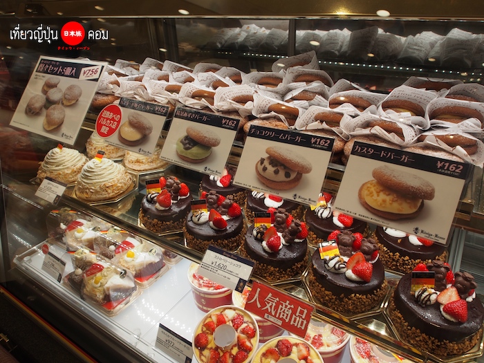 มีทั้งหมด 4 ไส้ก็คือ Plain Custard, Green Tea Red Bean, Chocolate และ Custard อีกแบบ ราคาชิ้นละ 162 เยน