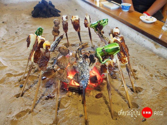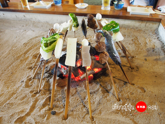 วิธีการคือตั้งไฟจากถ่านร้อน นำปลายามาเมะซึ่งเป็นปลาที่อาศัยอยู่ในแหล่งน้ำบนภูเขาไฟอะโซแห่งนี้ พร้อมเครื่องเคียงโมจิ พริกหวาน หัวไชเท้า หัวเผือก บุกและไข่นกกระทา เต้าหู้ และโมจิ ทาด้วยน้ำจิ้มมิโซะสูตรเฉพาะของทางร้านผิงไฟทีละด้านจนสุก ทานคู่กับข้าวสวยคลุกผักดอง มะเขือเทศสดๆจากไร่ และซุปดาโกะมิโซะ (ออกเสียงแบบคนคุมาโมโตะ) ทำมาจากแป้งดังโงะ อร่อยอย่าบอกใครเลยทีเดียว สามารถทานได้ 4-5 คน สนนราคาเซทละ 1890