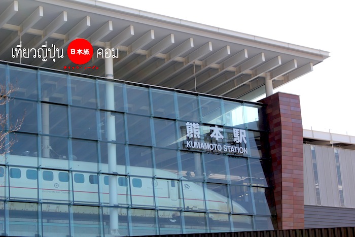 วิธีการเดินทางเข้าเมือง (จาก Fukuoka) นั่ง Shinakansen Sakura จากสถานี Hakata ลงที่สถานี Kumamoto ใช้เวลา 38 นาที (เมื่อถึงสถานีฝั่งชิงคันเซนจะเป็นสถานีใหม่ ส่วนฝั่งตรงข้ามด้านหลังจะเป็นสถานีเก่าแก่ดั้งเดิม)