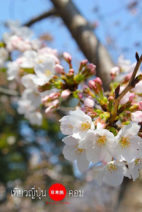 วันนี้เป็นวันแรกที่ดอกซากุระเริ่มบานให้เห็นกันแล้ว และจุดที่ชมซากุระได้สวยที่สุดของเมืองก็คือที่ปราสาทคุมะโมะโตะนั่นเองครับ