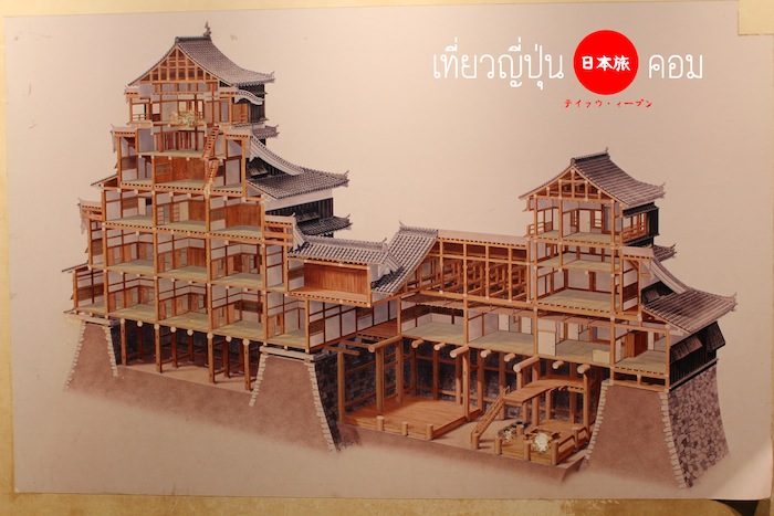 ในบริเวณปราสาท จุดที่น่าสนใจ จะเป็นอุโมงค์ชั้นใต้ดิน Kuragari Tsuro ที่ในอดีตเอาความมืดภายในอุโมงค์ไว้ใช้ล่อลวงข้าศึก เป็นจุดเด่นทางยุทธศาสตร์ของ ปราสาทแห่งนี้ ตัวอาคารด้านในเป็นพิพิธภัณฑ์ที่จัดแสดง ความเป็นมาของปราสาทไว้อย่างละเอียด และ Honmaru Goten Palace ที่ตกแต่งห้องด้วยภาพวาดวิจิตร และ ประดับด้วยทองคำอร่ามทั้งห้อง สง่างามมาก สร้างขึ้นเพื่อฉลองครบรอบ 400 ปี และเพิ่งเปิดให้บุคคลภายนอกเข้าชมได้เมื่อปี 2008 ที่ผ่านมานี้เอง