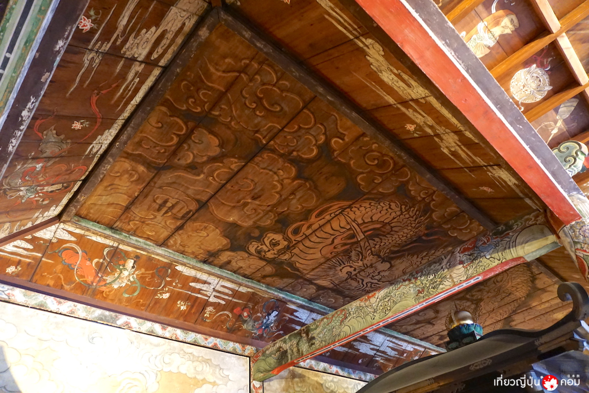 Tenjyoryu-zu ภาพวาดมังกรเก่าแก่บนเพดานในหอ Yasui-do ที่มีไว้เพื่อป้องกันอัคคีภัย