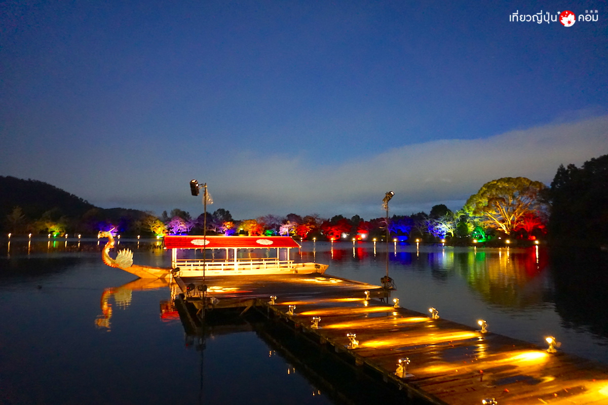 โดยรอบบ่อน้ำจะเป็นที่ตั้งของ เจดีย์ชินเกียว (Shingyo Pagoda) สร้างขึ้นเนื่องในโอกาสครบรอบ 1,150 ปี ที่จักรพรรดิซะกะได้ทำการคัดลอกคัมภีร์ และมีสวนญี่ปุ่นที่ปลูกต้นซากุระสลับกับต้นโมมิจิ สามารถมาชมความงามได้ทั้ง 2 ฤดู และจะมีการประดับไฟในตอนกลางคืนด้วย