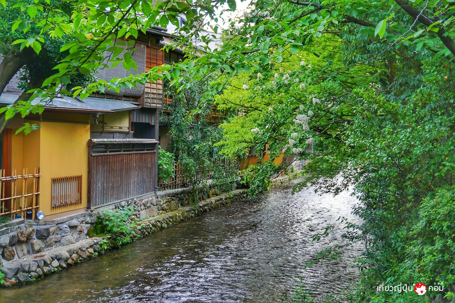 ถนนสายชินบะชิ (Shinbashi-dori) ในเขตเมืองเก่าย่านกิอง เต็มไปด้วยอาคารโบราณยุคดั้งเดิมของชาวเกียวโต เรียงรายขนานไปกับลำธารเล็กๆสวนหนึ่งของแม่น้ำชิระคะวะ