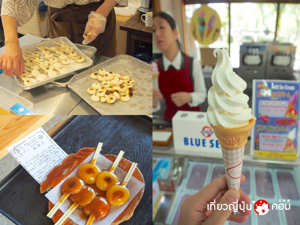 ภายในสวนยังมีร้านขายของที่ระลึก ขนมแป้งดังโงะย่างจุ่มซอสโชยุ ออกรสหวาน และ ซอฟท์ครีมรสชาดพิเศษอย่างมันม่วงหวาน และมันหวานโซจู